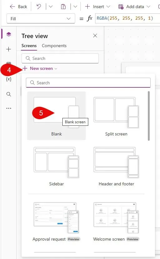 然后我们就进入Power App Studio啦, 加载时会有点慢. 进来后可以看到Tree View下面有默认的一些页面, 但是我一般会删掉, 新建一些空白页面, 更灵活简单.