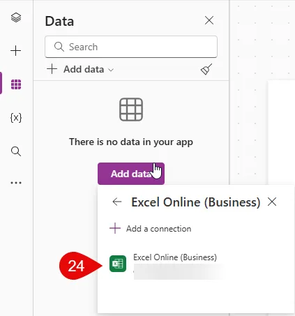 点了这个Excel Online按钮后, 页面右侧会出现 choose a dataset, 然后蹦出你所用账号能登录的sharepoint site或是group, 或是你自己的OneDrive, 选择对应的folder, 找到你存放的excel table文件, 就能找到对应的Excel table. 每一步都有提示, 按照点就行.