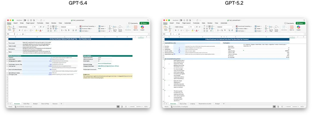 在针对表格建模的内部基准里,GPT-5.4的平均得分为87.3%,而 GPT-5.2 为 68.4%。