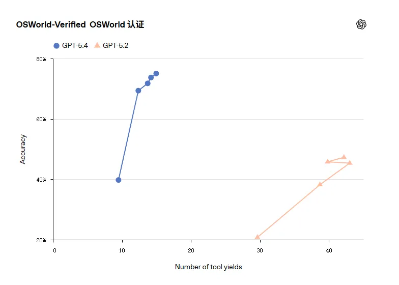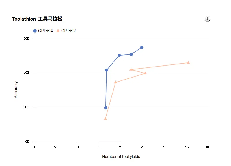 GPT-5.4 在这方面比前代更准确也更高效,在Toolathlon这类测试上,用更少的交互轮次完成任务的概率更高。