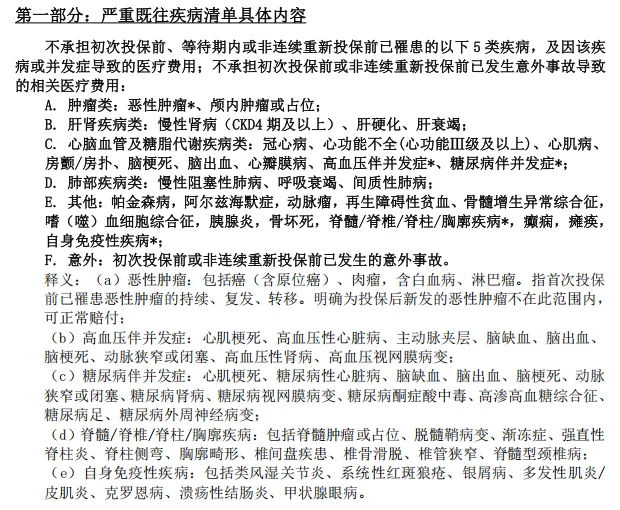 用于判断是否属于严重既往疾病的其他疾病清单,在此不做呈现。