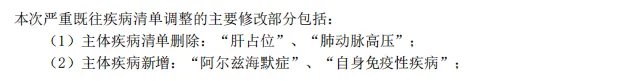 7月2日之后的严重既往症疾病清单内容:
