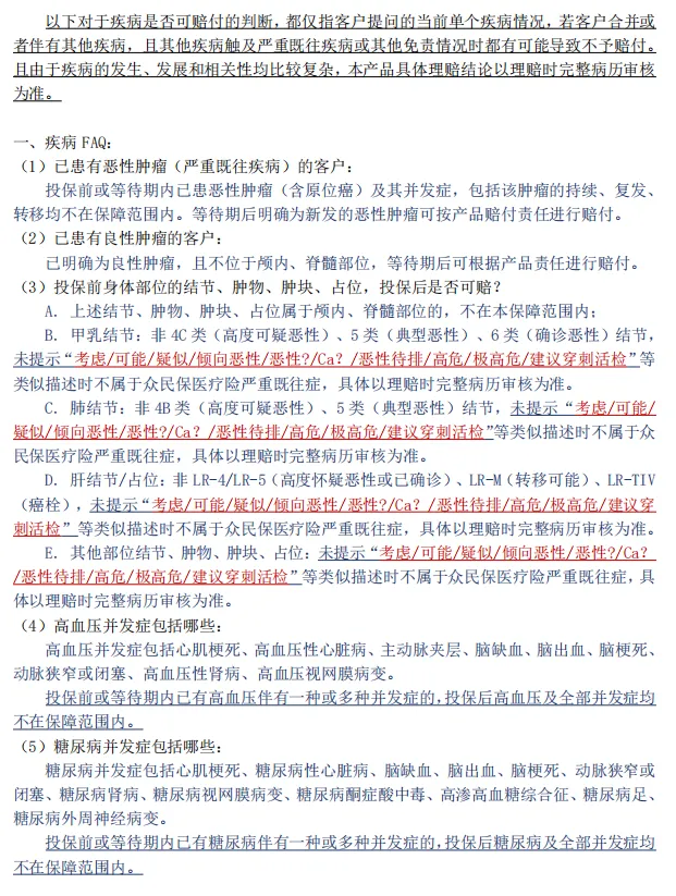 众民保·中高端严重既往疾病说明及解答