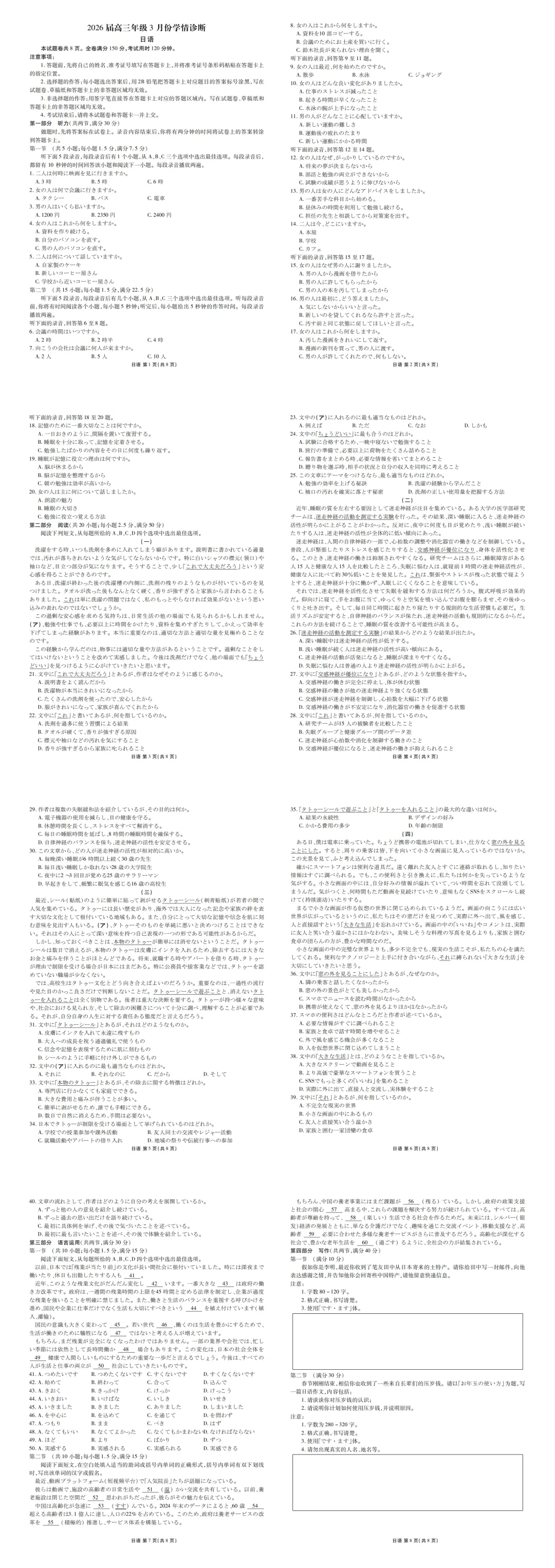 解析!WORD广东省衡水金卷2026届高三3月联考日语试题(作文:感谢邮件;お年玉の使い方)+听力+答案详解及听力原文