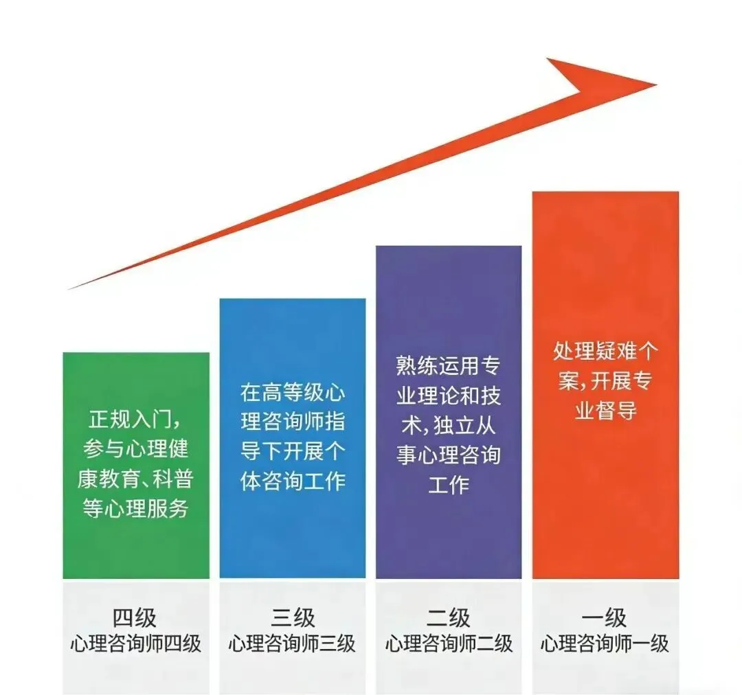 心理咨询师各等级能力要求依次递进,高等级涵盖低等级。