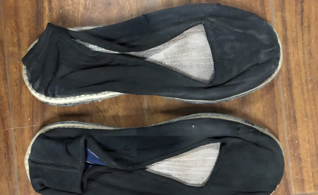 这个黑帮面的是千层底布鞋,鞋面顺着脚背打了活口,鞋底边缝一圈密密的小白线,拿在手里捏一捏能听见麻线咯吱,雨天不怕,走远路也不夹脚,妈妈说穿这个脚板不冷不燥,鞋破了翻过来再纳两道,还能撑半季。