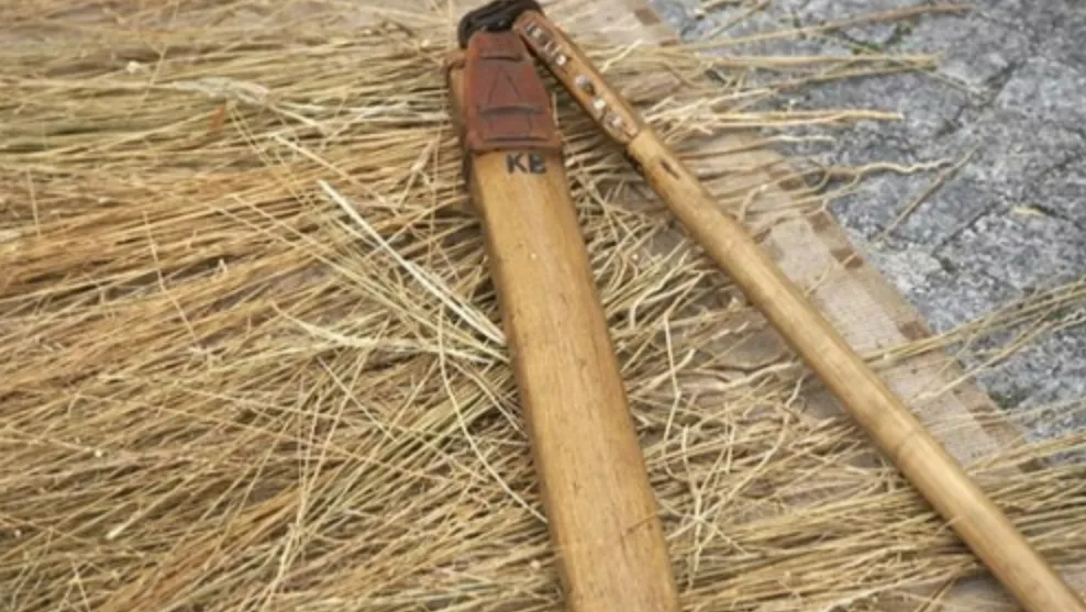 这个木把子接着拍子的是连枷,打场用的,稻麦摊平,肩膀一抡手腕一转,啪嗒一声谷粒抖下来,站在一旁看热闹的孩子都要往后退一步,老伯说别靠前,这玩意儿不认人。