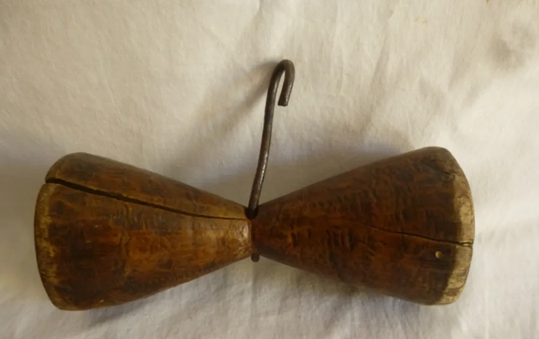 这木锥连着铁钩叫拔吊,也有人叫纺线锤,手一搓它转,麻股顺着劲儿拧紧,做草鞋的时候皮实又结实,爷爷拎着它坐门槛,抬眼说稳着点别散股,我一听这话就不敢乱动。
