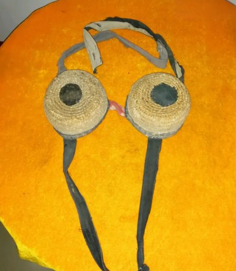 这双草编的是驴眼罩,系在牲口脸上遮光,拉磨时不分神不头晕,圈带子是布的,汗湿了晾一晾就又用,孩子们第一次见都说像大眼睛,其实是庄户人的心思细。