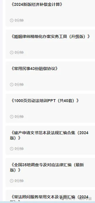 33:执行法律法规一本通34:建设工程纠纷争议焦点合集1-5035:律师常用数据及公式大全(2021版)36:12类律师尽职调查手册(上百份资料拿来即用)37:新版50套工伤处理实务宝典(处理流程+法规+协议)38:央企内部合规手册及其相关配套制度39:律师函9大类范本及书写规范(word可修改,拿来即用)40:涉股权类税务问答手册41:2024年交通事故赔偿项目及计算公式合集42:2023年工伤案件法律应用手册(415页)43:北上广深律师执业便利手册44:律师典型实务办案流程45:律师常用文书模板合集46:婚姻家庭纠纷常见问题及解决办法47:交通事故司法观点及法律汇编48:刑事案件工作指南49:公司法实务资料50:最高院和最高检历年指导性案例合集(共七万字)51:律师破产实务汇编手册52:超详细!各类案件办案流程53:法律意见书写作手册54:庭前准备工作及技巧合集55:律师执行实务汇编手册56:企业管理司法全套文书57:民法典评注手册58:民事诉讼文书样式:制作规范与法律依据59:诉讼证据学习手册60:执行案件规范手册61:法律意见书写作手册62:法律法规一本通63:详细解答 | 130个企业必问的工伤问题64:律师常用法条体系图解汇总65:刑事辩护的十大方法和技巧66:诈骗犯罪案件有效辩护宝典手册67:各类申请书模板汇总68:股权激励设计应用与实战案例分析69:企业内控管理流程手册70:法学论文写作手册71:民法典学习问答手册72:公司章程设计指引手册73:法律文书模板范例及书写技巧74:再审工具包75:合理避税筹划技巧76:法律尽职调查完全手册(含工作底稿模板等)77:深度 | 怎样进行法律思维78:融资担保公司培训教材79:律师执业技能提升手册80:实操:律师办案指引81:强制执行相关法规汇编手册82:企业纳税筹划完全手册83:各专业领域法律政策全书84:法律意见书模板合集85:4200套企业运营管理手册86:公司法律风险控制完全手册87:尽职调查资料集88:企业法律实务操作完全手册89:律师主持调解工作技巧和方法90:金融合同范本最新修改版91:律师庭前准备工作及技巧92:全套创业必备工具包93:实操!合同的排版美化等问题汇总94:刑事司法文件汇编95:超强总结:离婚常见法律问题74条!96:超详细!各类案件办案流程97:劳动法培训资料包98:民事类诉讼文书(125份)99:税务实战资料包100:人力资源法律风险手册101:企业并购重组中9份重要文书102:工伤认定及赔偿标准103:合同控税技巧104:纳税筹划完全手册105:1064套股权方案大全106:破产案件操作指引手册107:常用诉讼文书范例及写作技巧108:法律尽职调查摘要109:劳动合同实务操作指引110:公司控制权安排方法及案例实操手册111:公诉阅卷的重点与方法手册112:企业法律顾问常用文书(128份)113:律师案源开拓等营销干货114:医疗纠纷法律实务115:办案必备:十五种常见经济犯罪案件证据清单116:超详细:婚姻家事适用文书模板117:交通事故索赔技巧大全118:保密及竞业限制法律适用操作指引119:要件诉讼九步法120:民事案件办理流程及技巧121:劳动合同法律实务与技巧122:律师企业并购重组流程与尽职调查实务123:53套股权激励方案124:各类型企业章程(62套)125:下载:控告状(治安处罚)126:借款、抵押、担保协议、还款承诺书127:婚姻家庭纠纷常见问题及解决办法128:企业管理类合同范本等(1064份)129:律师办案指引130:劳动争议全套文书(38份)131:公安常用文书(56份)132:行政类诉讼文书(57份)133:最新版刑事类诉讼文书(60份)134:公司章程制定管理手册135:一份详尽的内部控制手册模板136:合同管理办法137:要件诉讼学习手册138:公司法务管理办法范例模板139:融资合同及法律文书140:中华全国律师协会律师业务操作指引汇编(2028页)141:民法典解读学习资料手册142:法院类案办案要件指南汇览143:建设工程领域近百个经典裁判汇编144:工伤管理条例汇编145:企业内控及风险管理法规汇编手册146:新证据规则的文本解读及延展性阐述(完整版)147:企业惩罚制度范本148:建设工程合同案件诉讼手册149:律师高效工作习惯手册150:各类刑事案件无罪判决汇编151:合同速查清单与典型条款示范写法库152:《民法典专题研究汇编》2000余页,数十万字153:合同速查清单与典型条款示范写法库154:法院类案办案要件指南汇览155:建设工程施工合同范本(根据民法典修订)156:人脸识别法规标准及热点案例汇编157:婚姻律师精细化办案实务锦囊158:应急管理中央法律法规汇编159:建筑、借贷及劳务等22类合同纠纷裁判观点合集(共200份)160:最新整理律师函模板与制作指引161:土地法律法规政策汇编手册162:法律人求职全套资料包163:264张思维导图读懂民法典164:企业合作保密协议范本库165:律师合同审判实务汇编手册166:房产实操手册167:公司法律实务资料包168:地方法院审判思路和裁判指导169:刑法对17个罪名量刑重大调整170:IPO审核案例手册(附点评)171:建设工程法律法规及纠纷规范性文件汇编172:100个刑事辩护律师常用文本工具173:合同风险管理实战手册174:2021年数据安全法律手册175:实操 || 律师调查令操作手册176:全套股权设计工具包177:合同法评注学习手册178:律师家事纠纷办案手册179:劳动人事相关法规汇编手册180:法学论文写作手册181:法律检索干货资料包182:超全不动产登记政策法规指南,共70万字!183:青年律师工作实务手册184:买卖合同相关资料汇编手册185:5000+份合同协议模板大全(109个行业)186:股权架构设计实操手册187:非诉讼业务律师基础实务手册188:超全IPO
