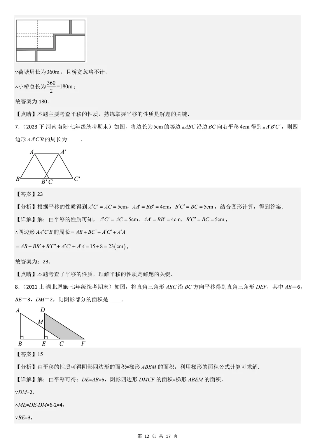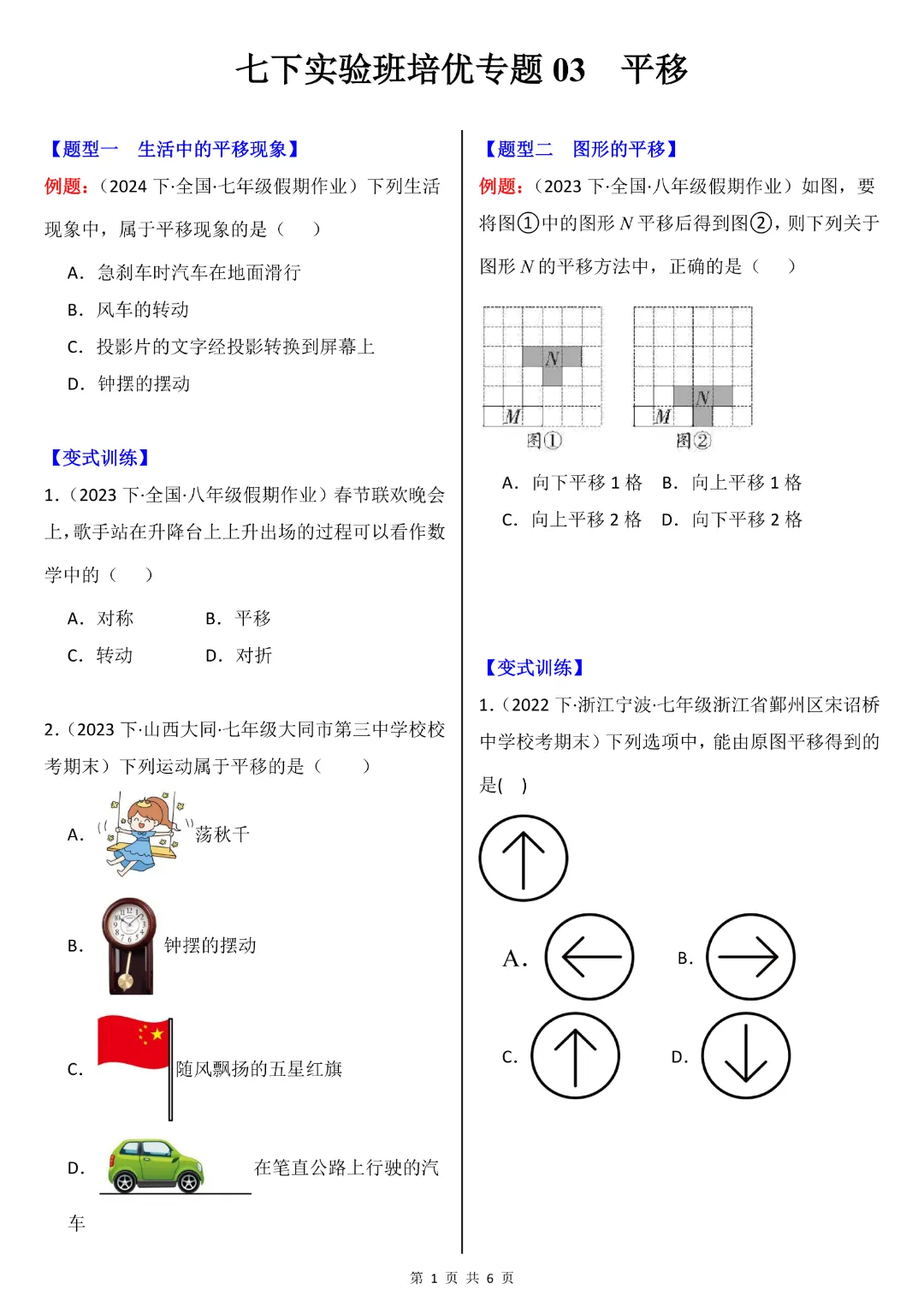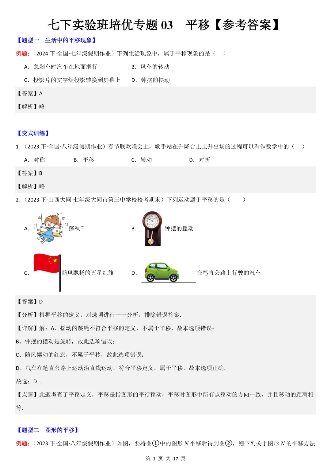 今天给大家分享的是:【七年级下册数学】【通用版】专题03平移题型专攻(原卷版+解析版)|完整高清电子版可打印