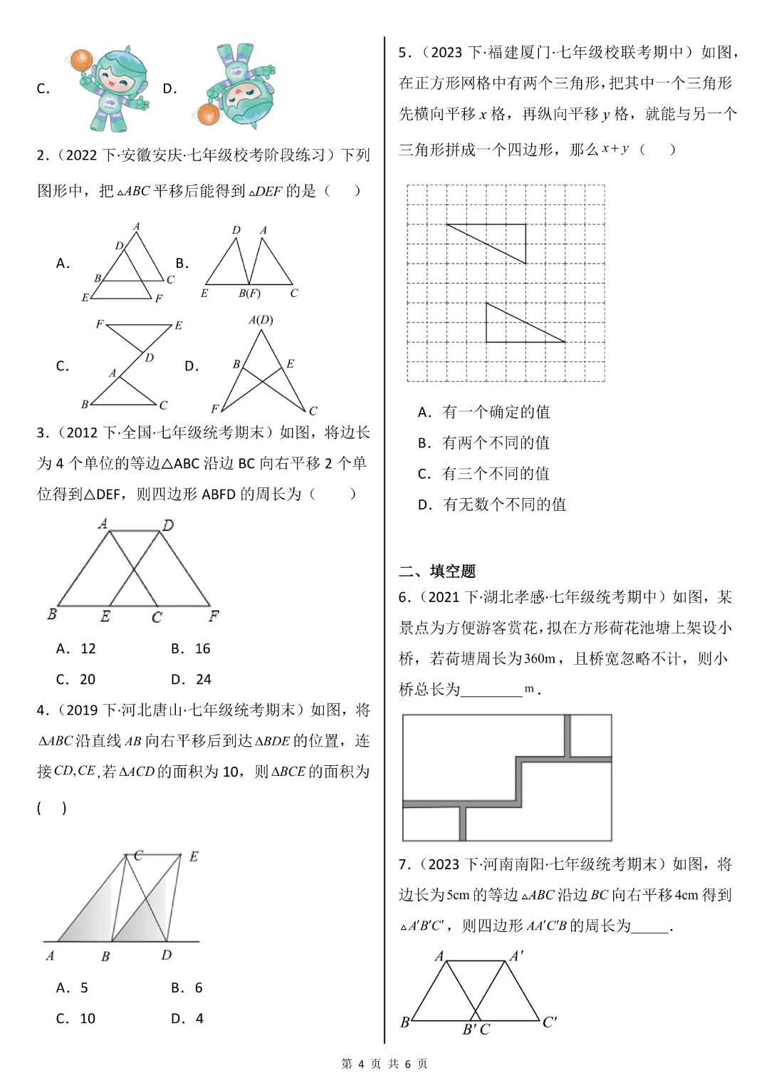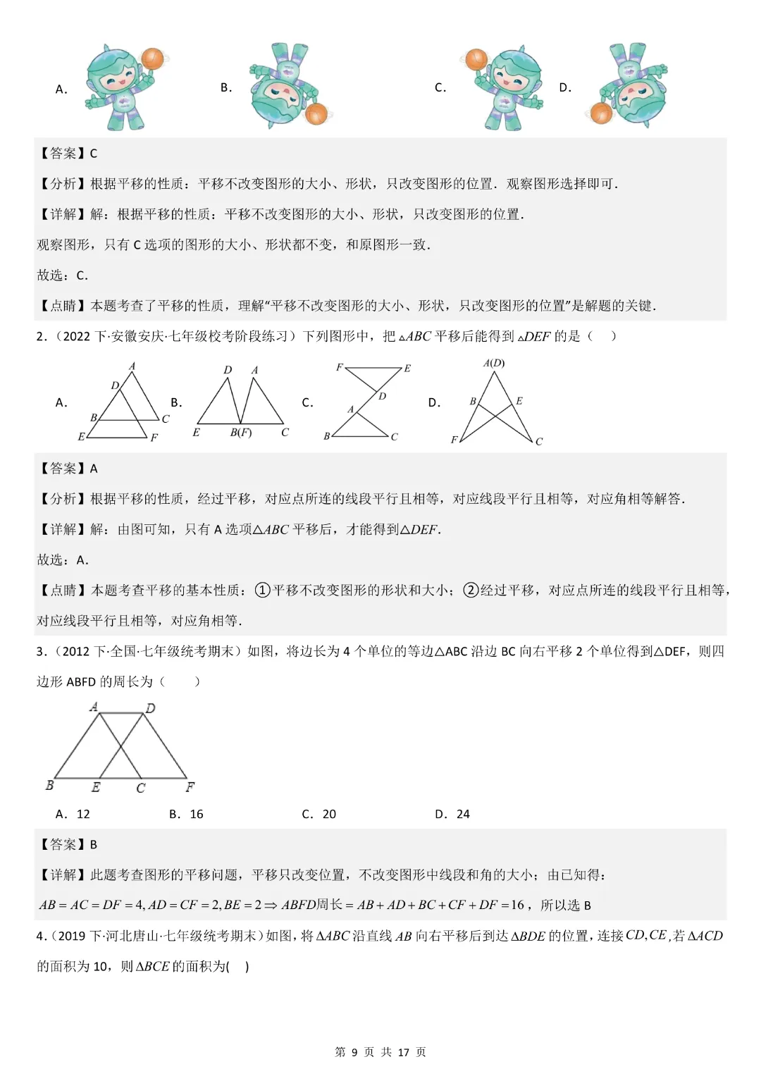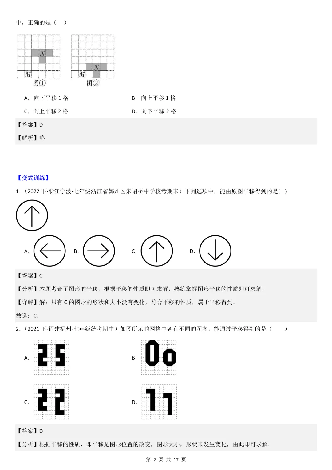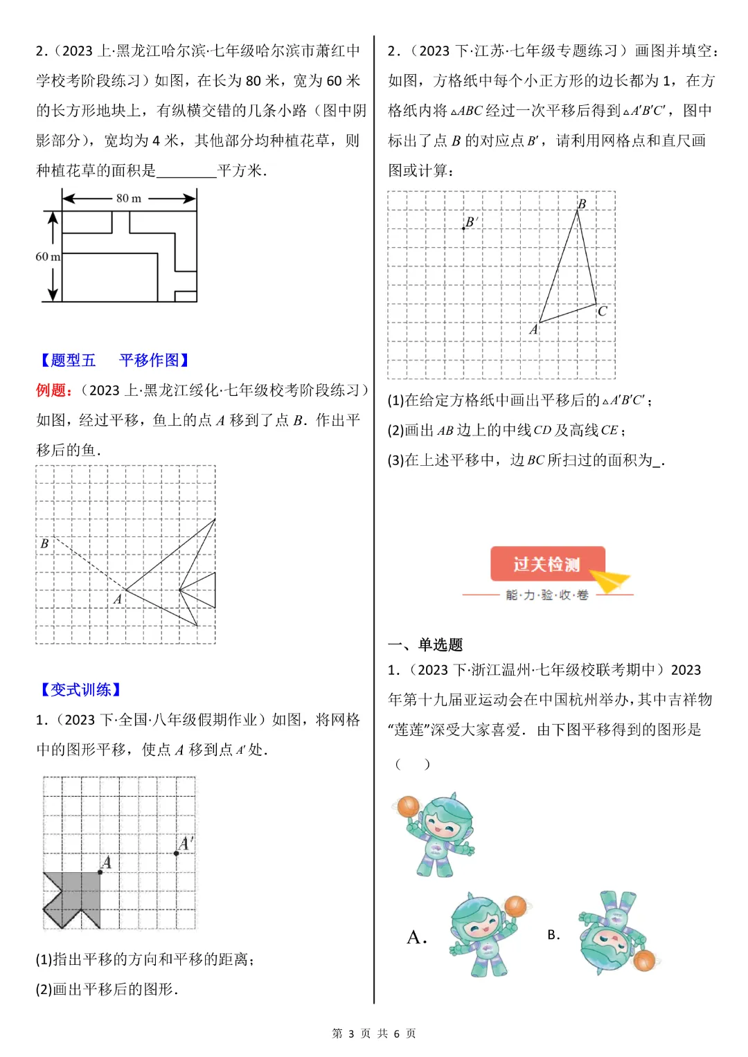 今天给大家分享的是:【七年级下册数学】【通用版】专题03平移题型专攻(原卷版+解析版)|完整高清电子版可打印