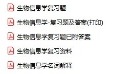 今天分享的资料是「0966-生物信息学」电子版+学习笔记+知识点总结+期末考试重点+复习资料+习题集及答案+名词解释+历年真题试卷及答案+题库及答案+复习重点+思考题及参考答案+公式总结+考试重点基础题+知识总结+高清PDF可打印+免费分享!