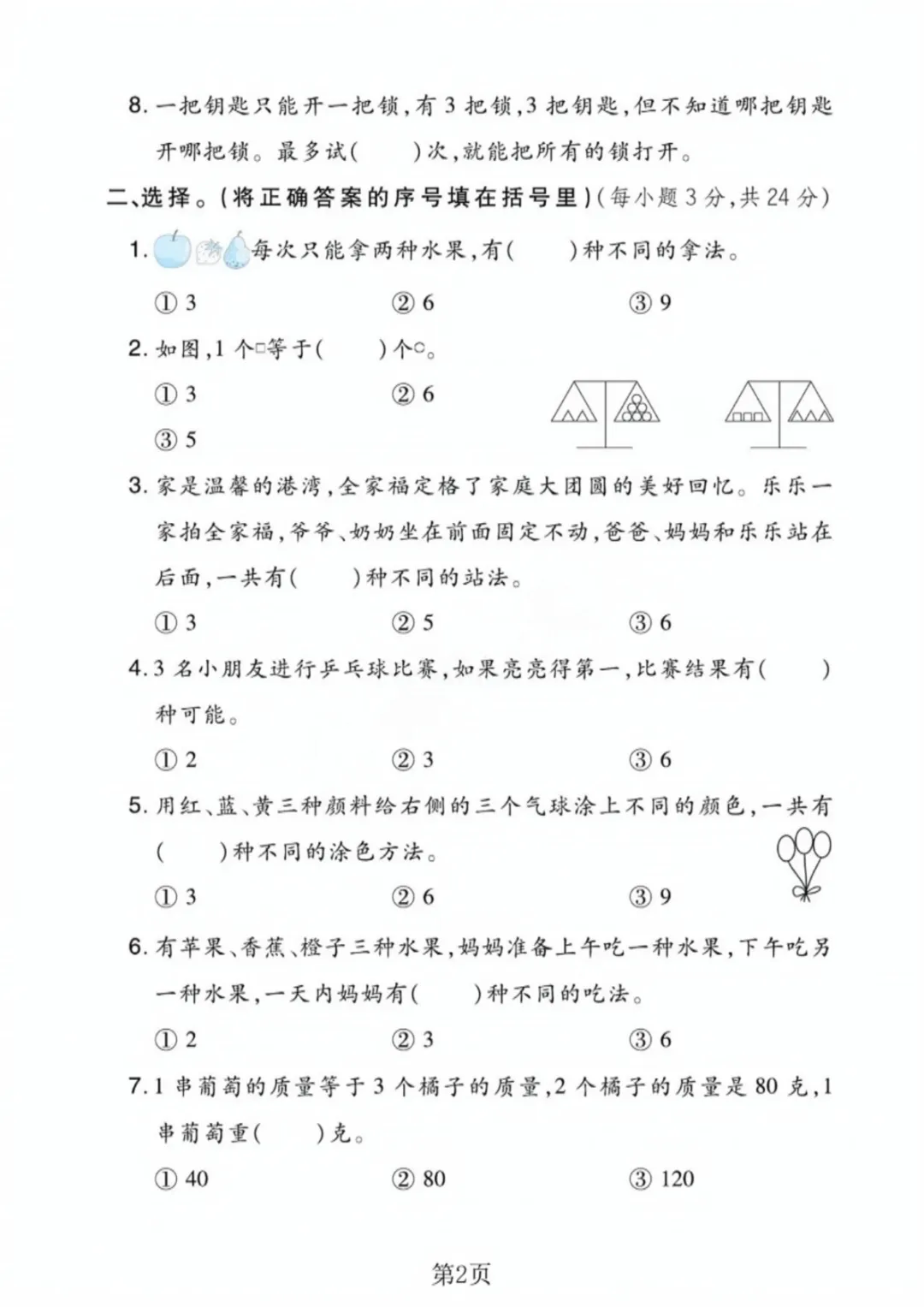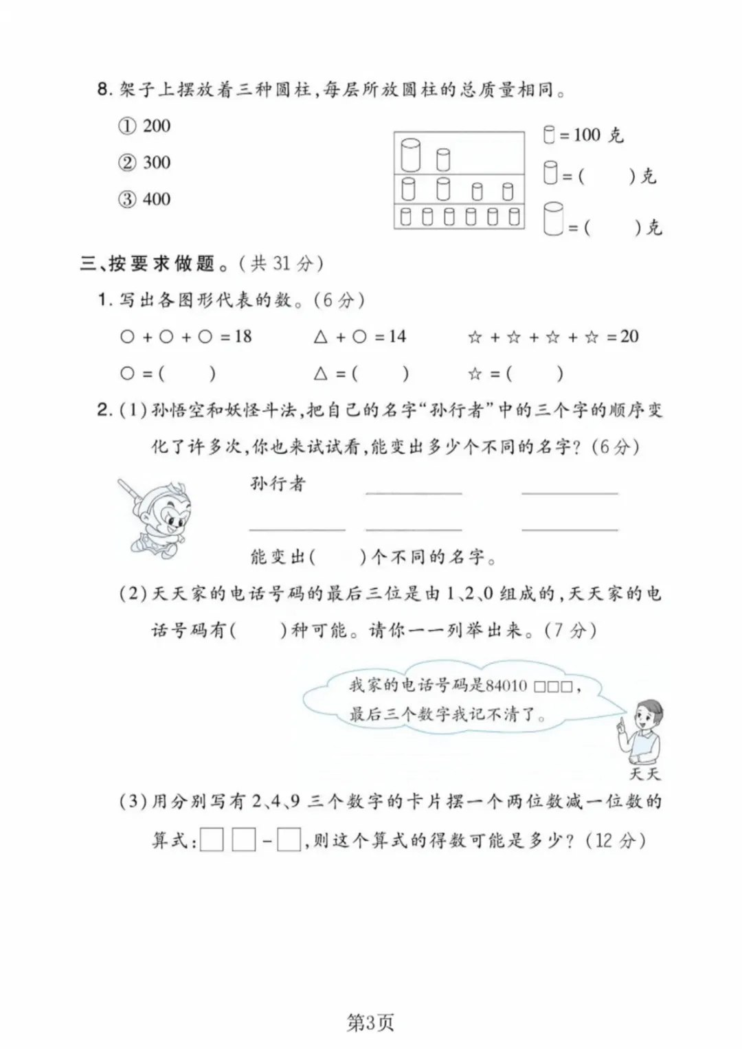 【高清电子版】二年级(下)数学 第八单元拔尖测试卷《冀教版》