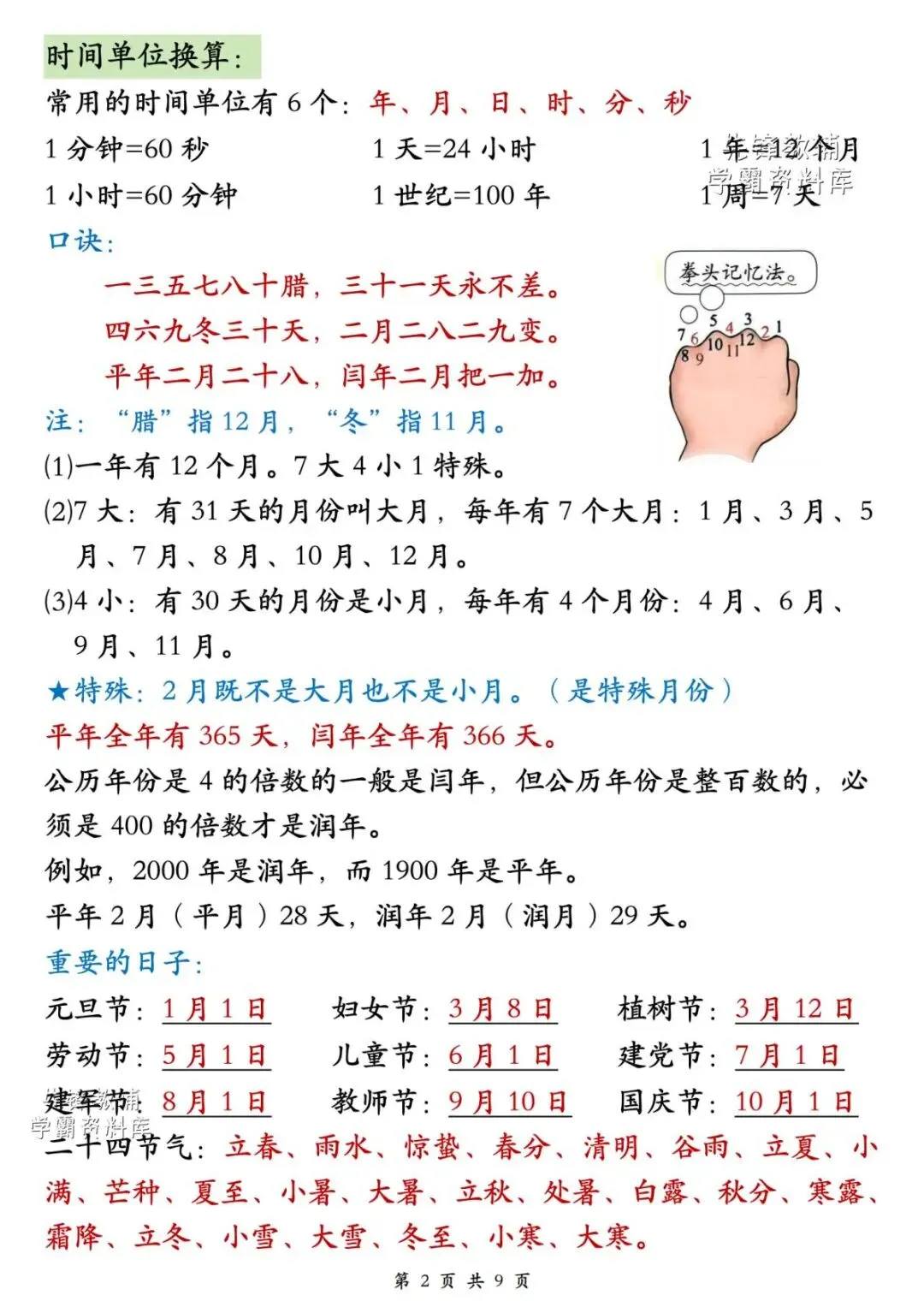 三年级数学下册《必背公式》9页(完整电子版可打印)