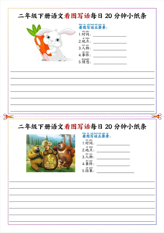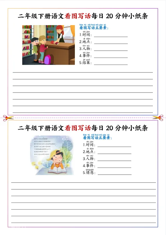 26春新二年级下册人教版(部编版)《语文看图写话每日20分钟小纸条》,共11页,可下载打印