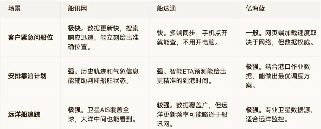 如果你是大型港口或企业:考虑亿海蓝的企业版或API服务。虽然成本高,但能实现业务流程的自动化,长远来看是降本增效的利器。