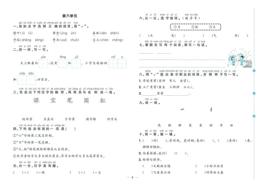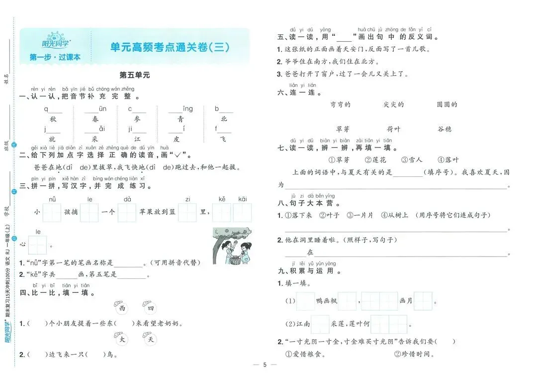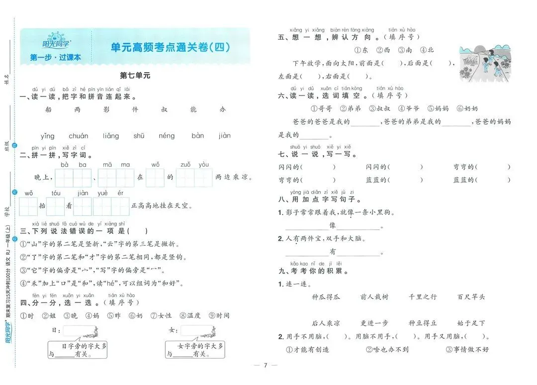 2026习题及答案一上(PDF练习册案可下载打印)《附小学测试卷合集》