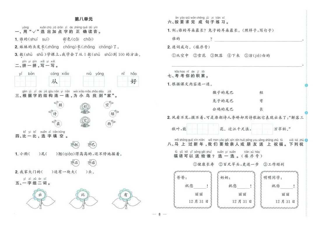 今日分享这份一上(高清PDF,可打印),寒假预习必背,需要的家长或老师可以给孩子提前准备一份!~