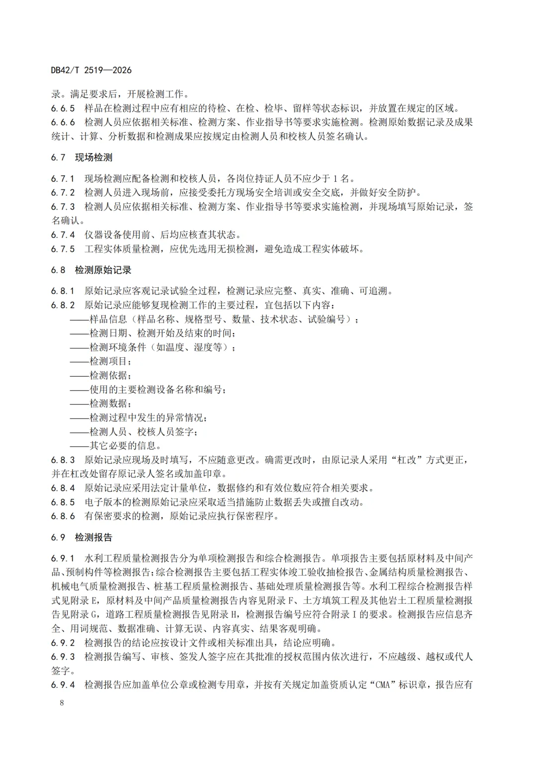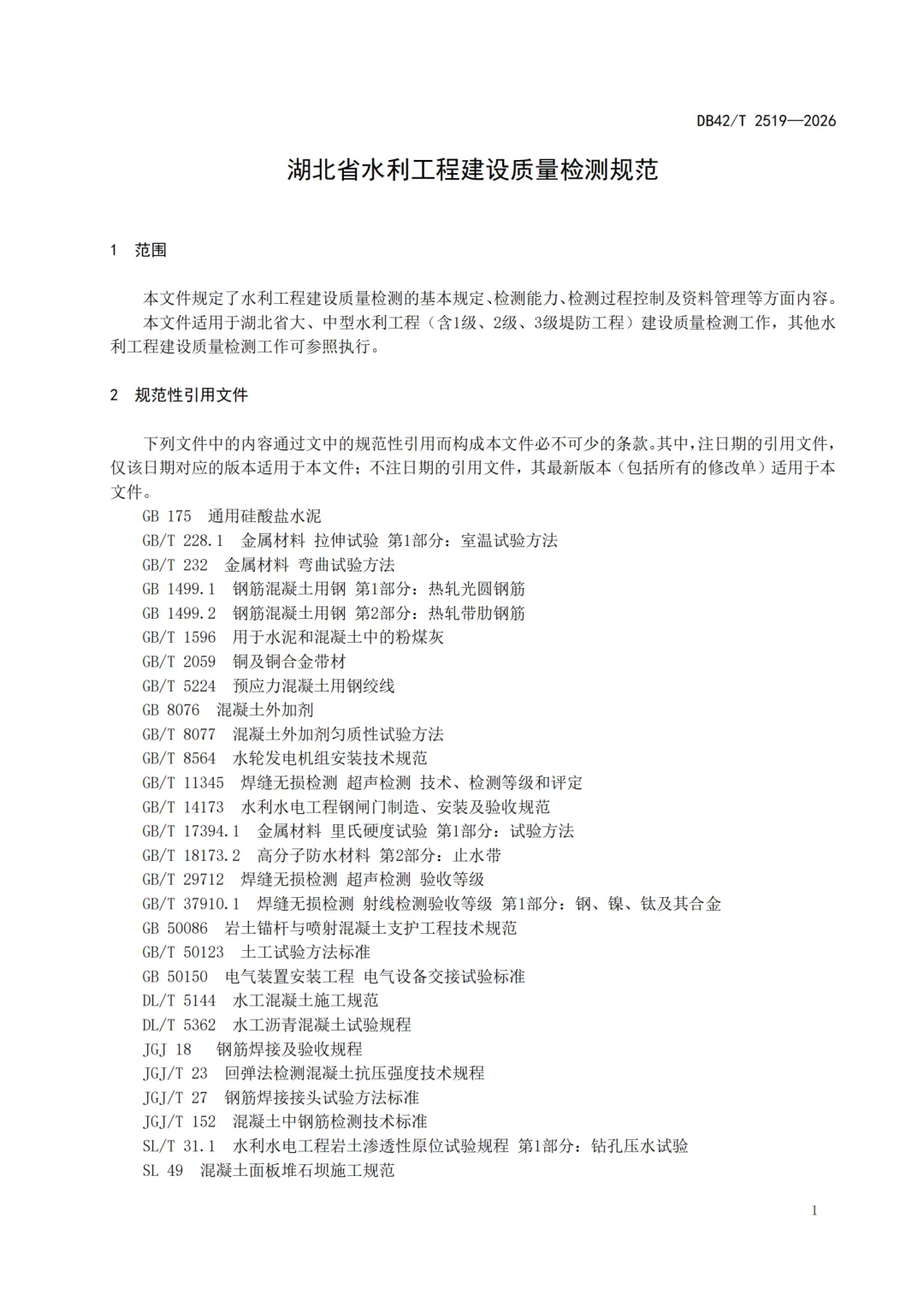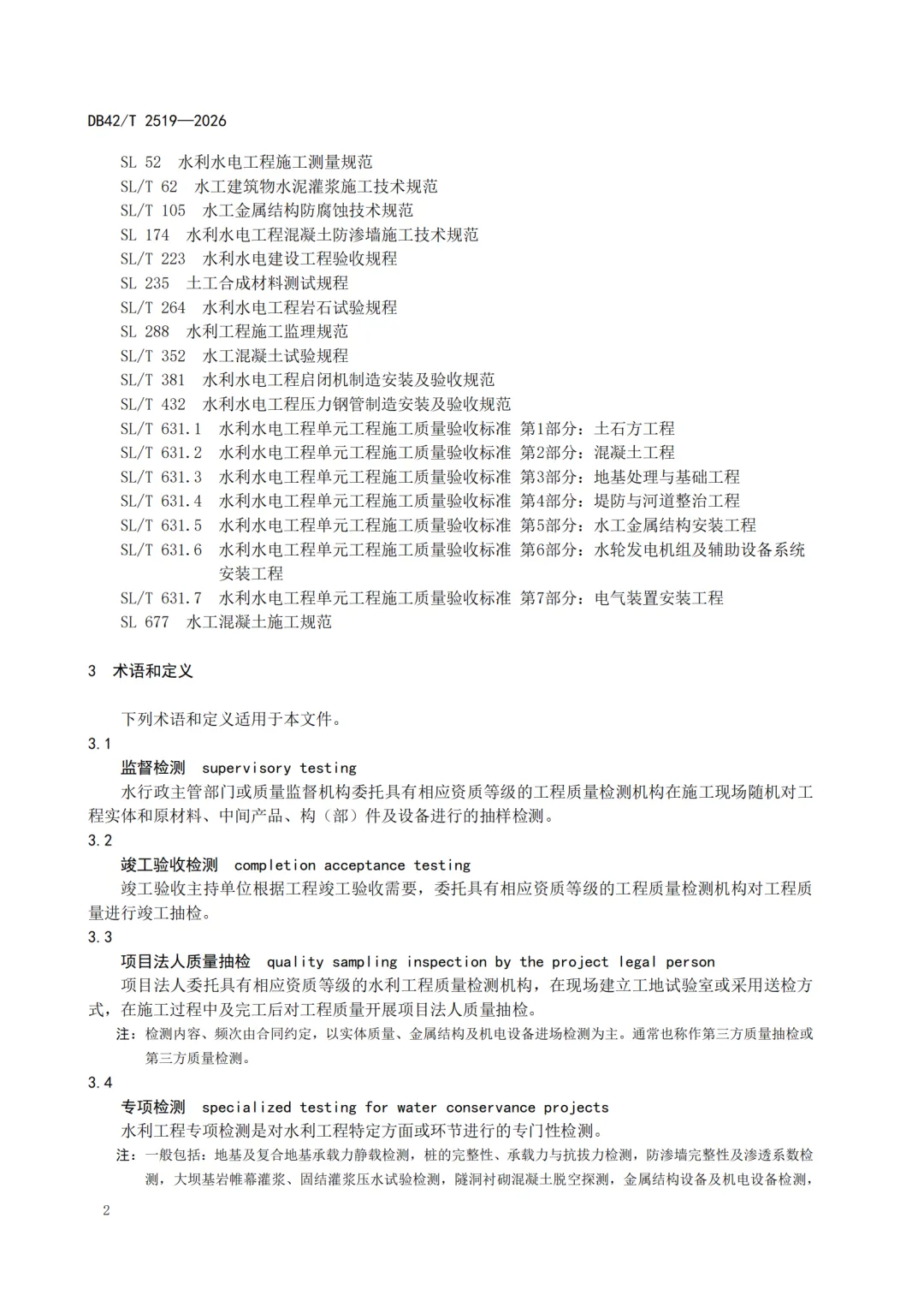 点❤+转发☞DB42T2519-2026 湖北省水利工程建设质量检测规范.pdf
