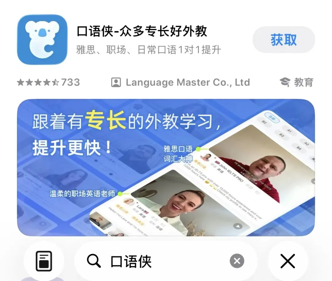 这款APP就是口语侠。这款以即时外教连线、碎片化练习、轻量化付费为核心的口语APP,精准解决了“想练口语没人陪、没时间上课、成本太高”的痛点,以简单直接的模式占据细分市场。它不追求大而全,而是把“随时开口”做到极致,适合需要实战环境的备考者、职场人与英语爱好者。