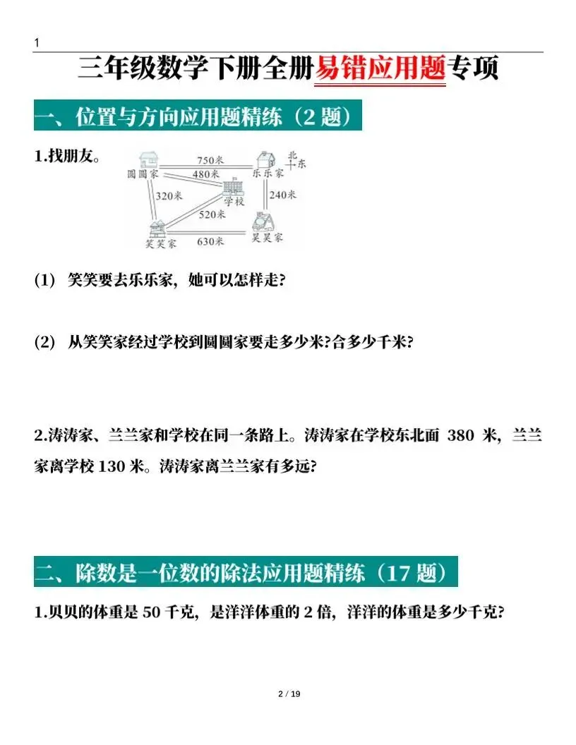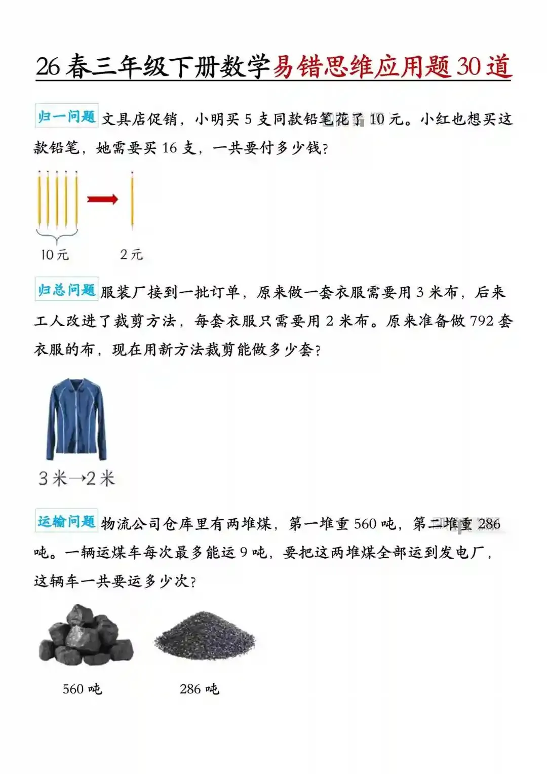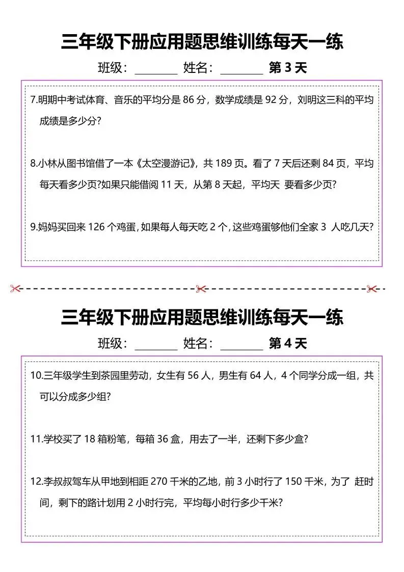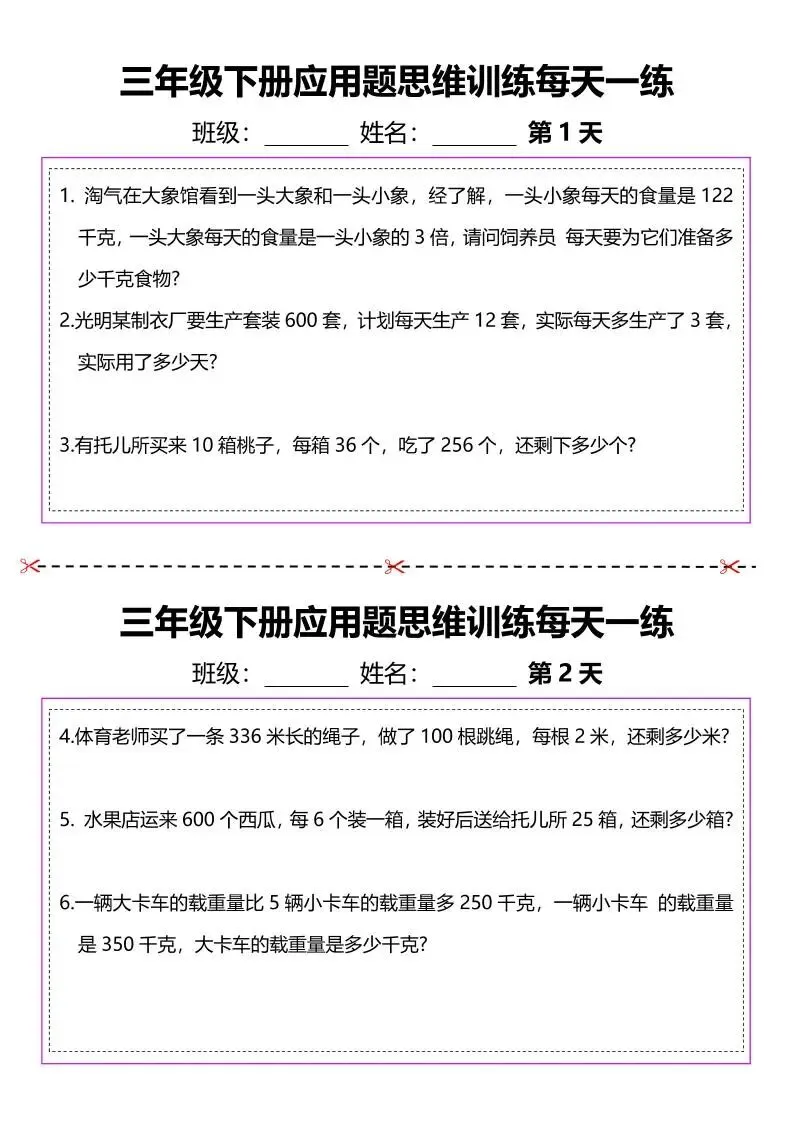 三年级(下)数学 应用题专项练习,电子版资料,可打印