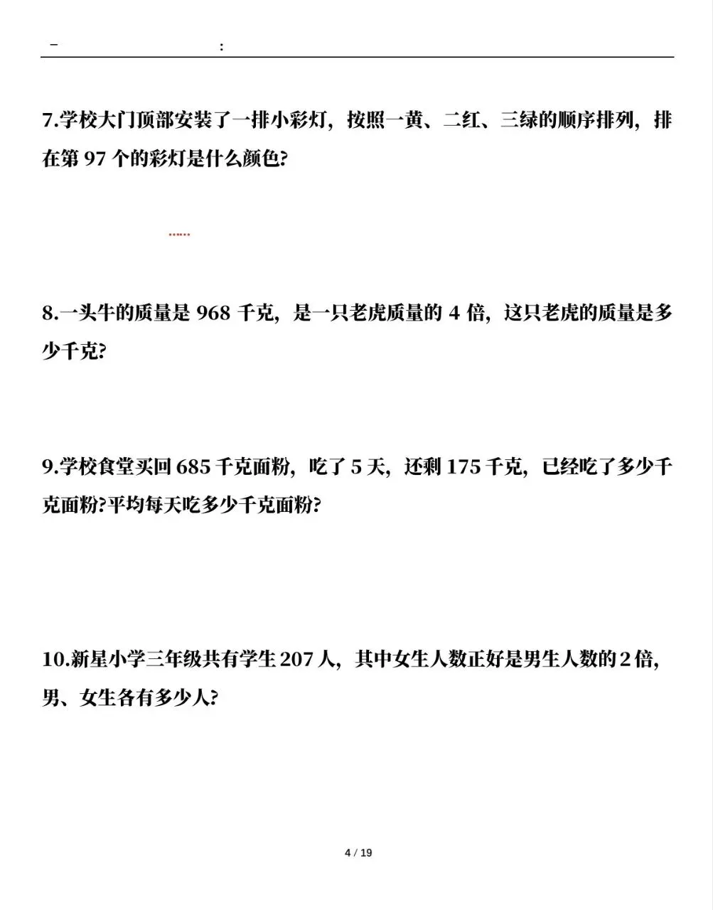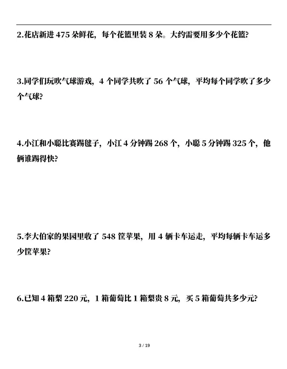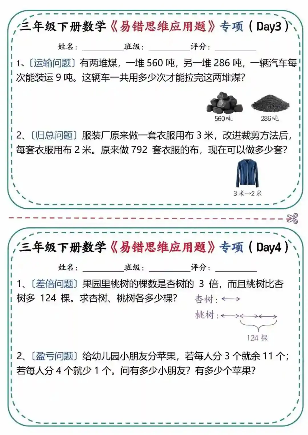三年级(下)数学 应用题专项练习,电子版资料,可打印
