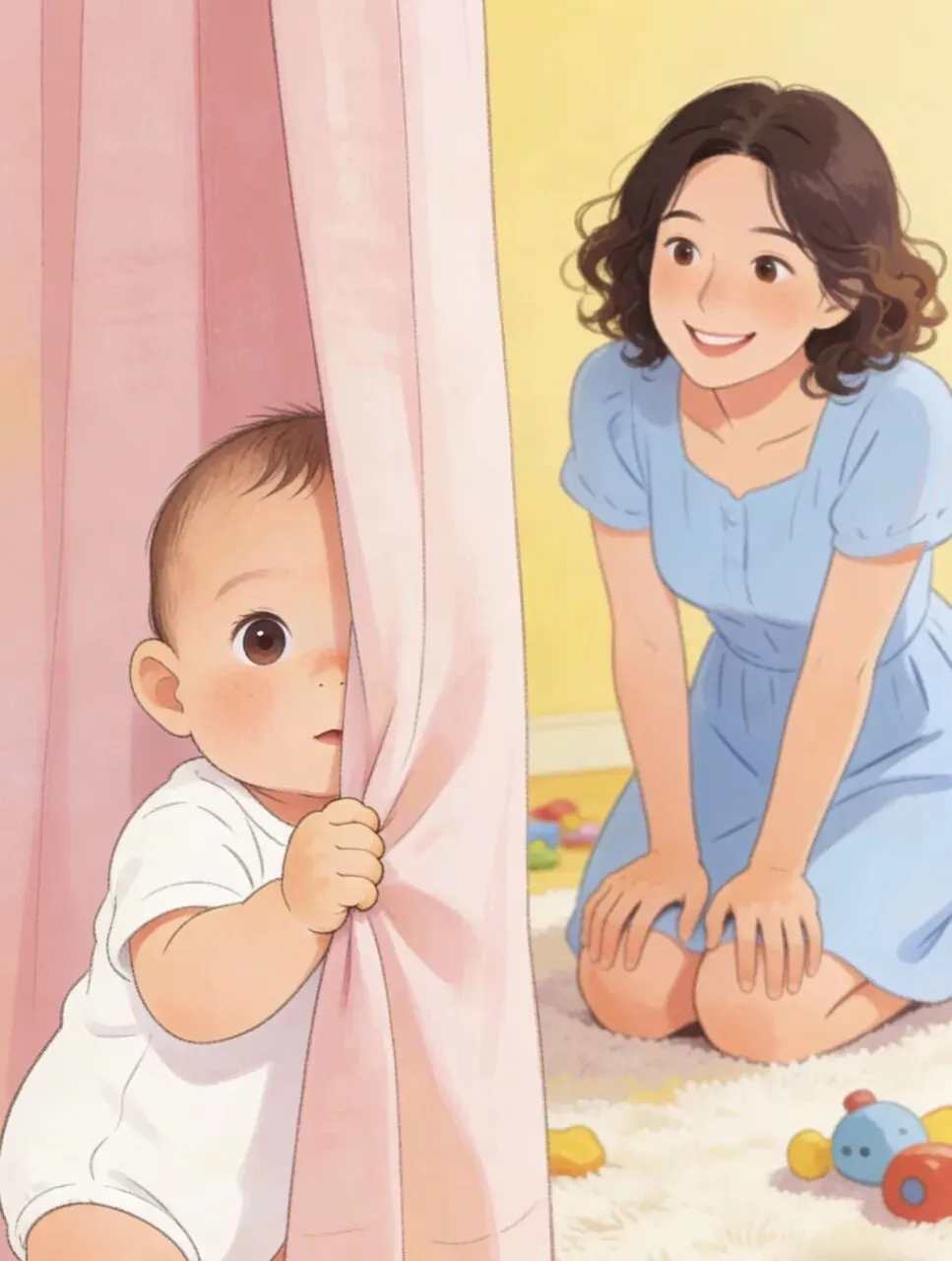 多陪他玩躲猫猫,让他明白“消失的人会回来”,那短短几秒的等待,能帮他建立稳稳的安全感,也让亲子联结更紧密。