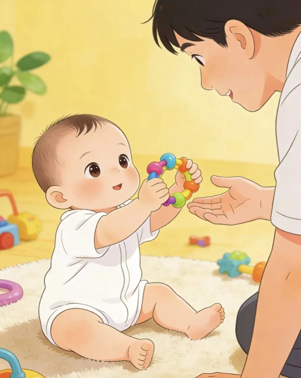 宝宝会主动抓起玩具、小饼干,往你手里塞,这是他社交意识的萌芽,也是在悄悄说“我喜欢你”。