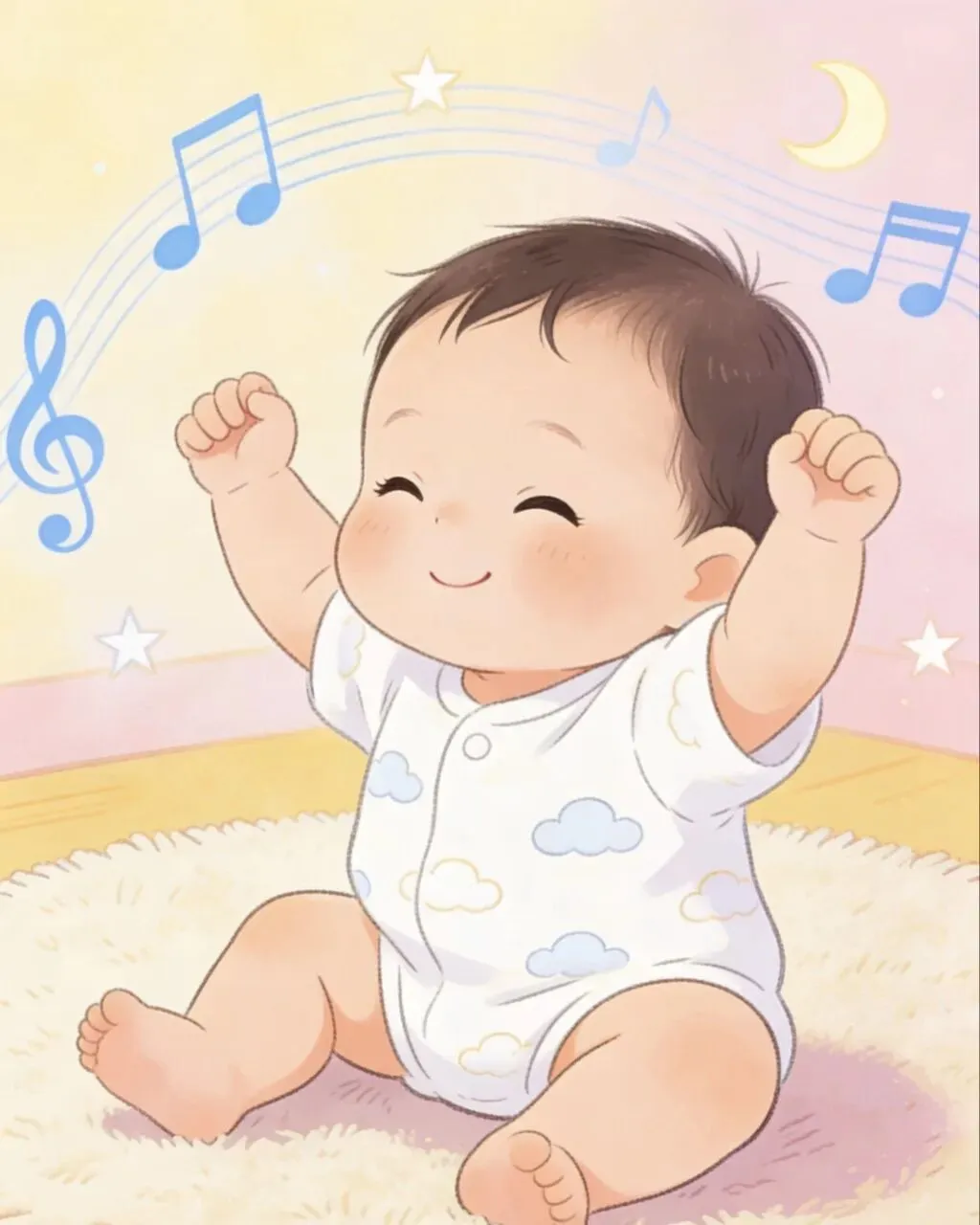 听到轻快儿歌、有节奏的声音,宝宝会晃脑袋、挥小手、蹬脚丫打节拍,说明他的节奏感正在悄悄发育。