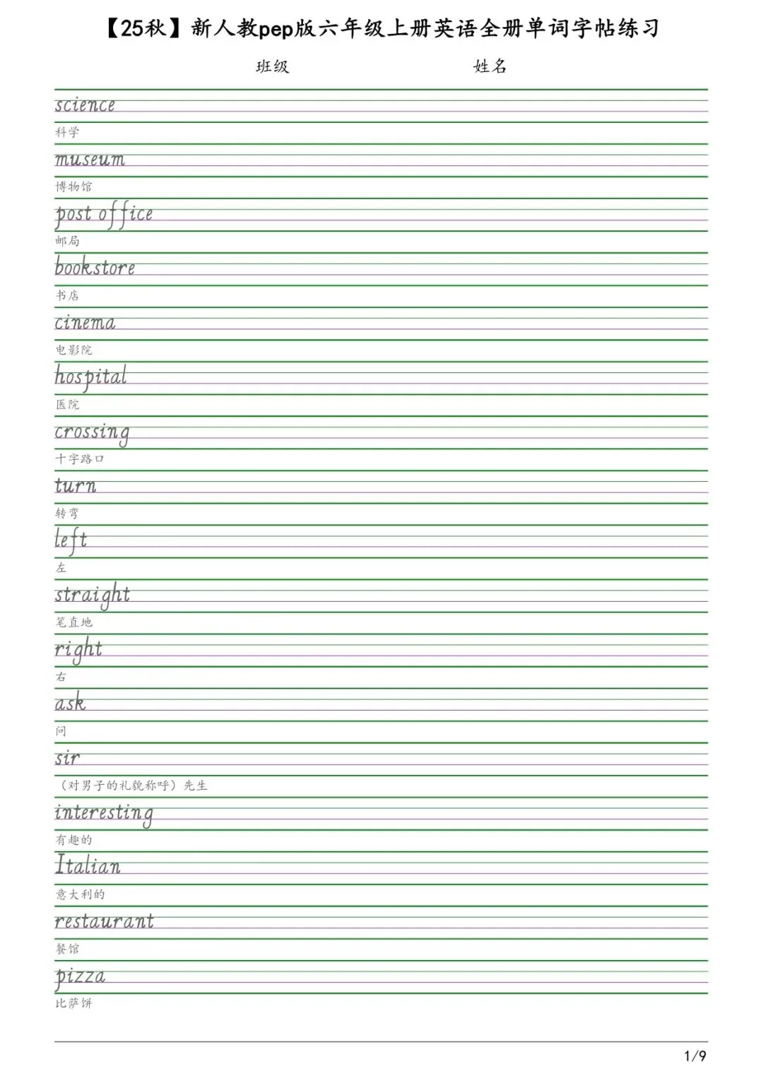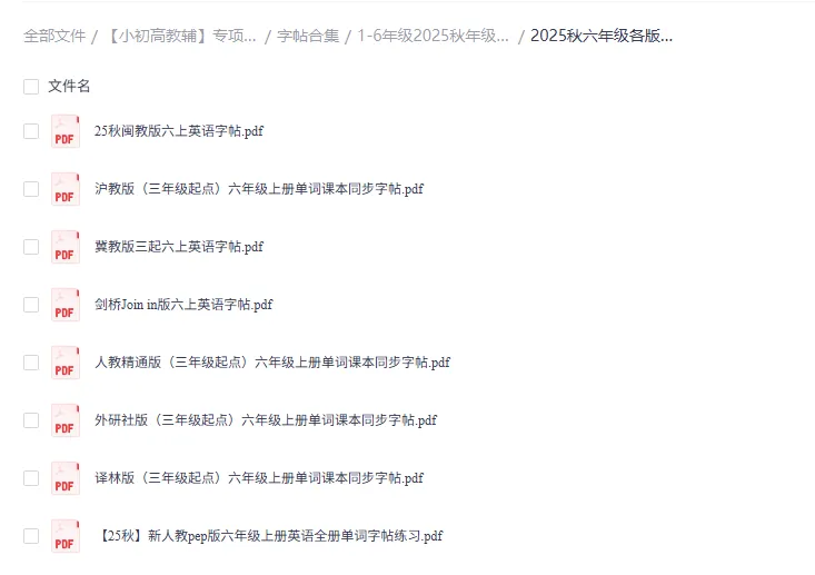✅ 2025秋新六年级各版本英语字帖