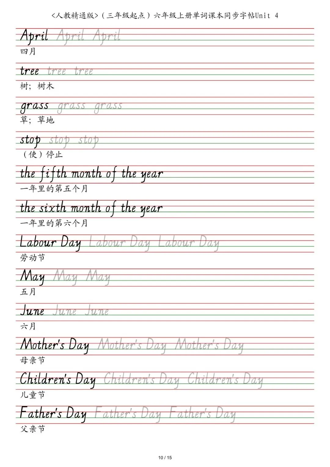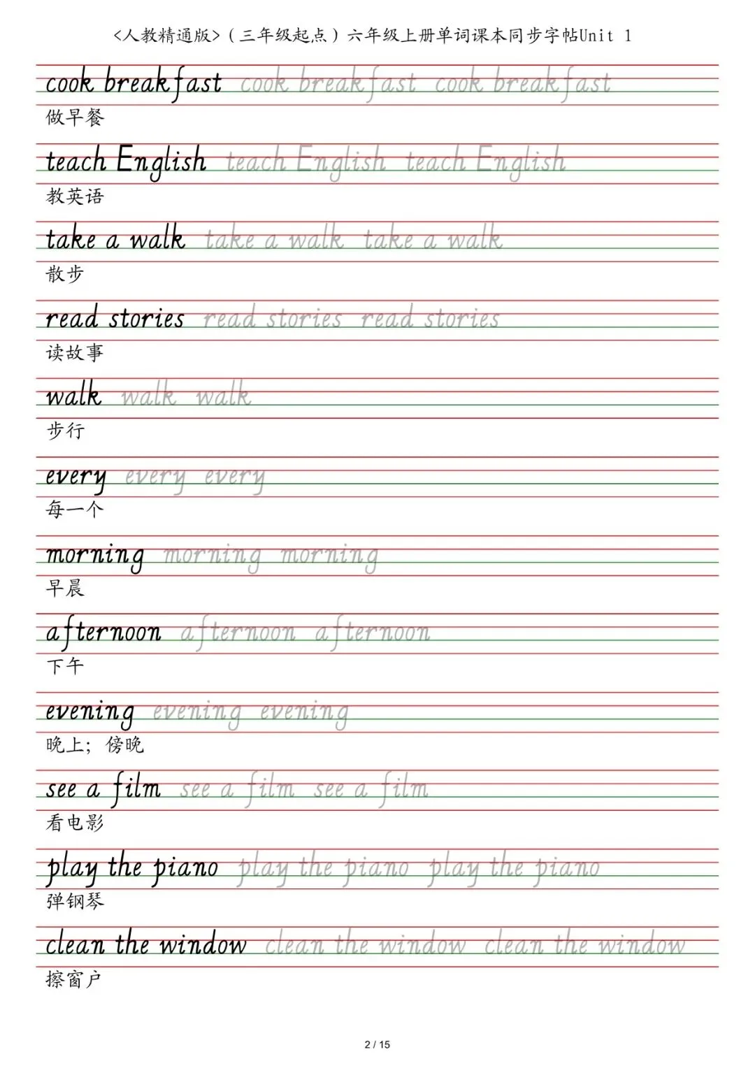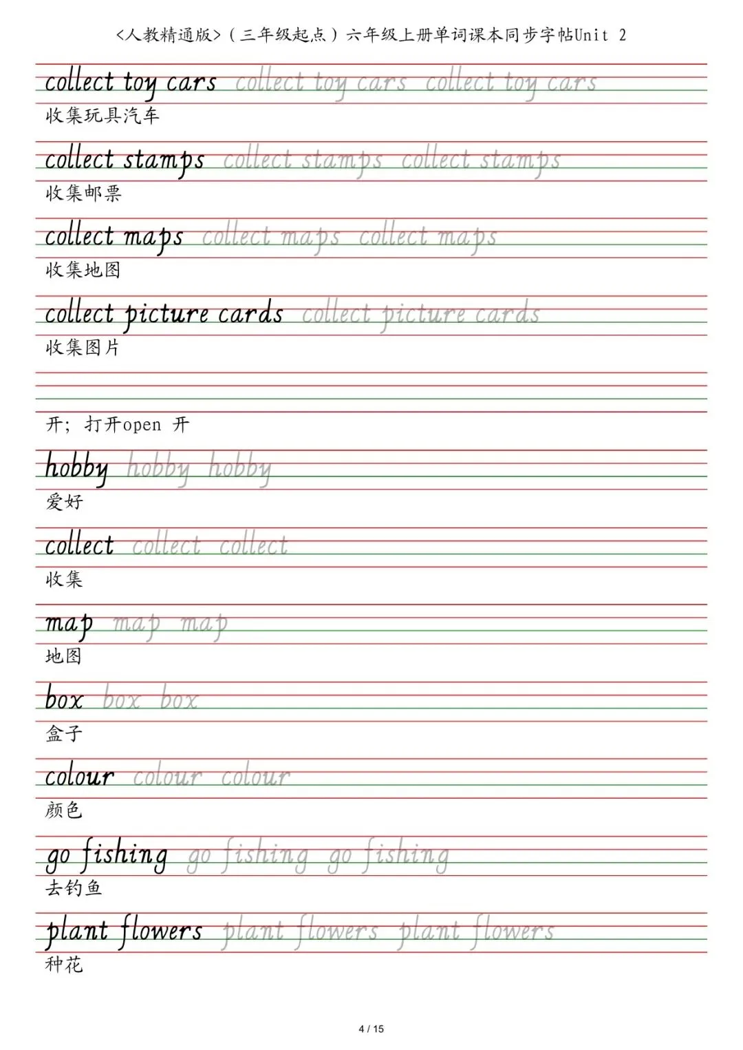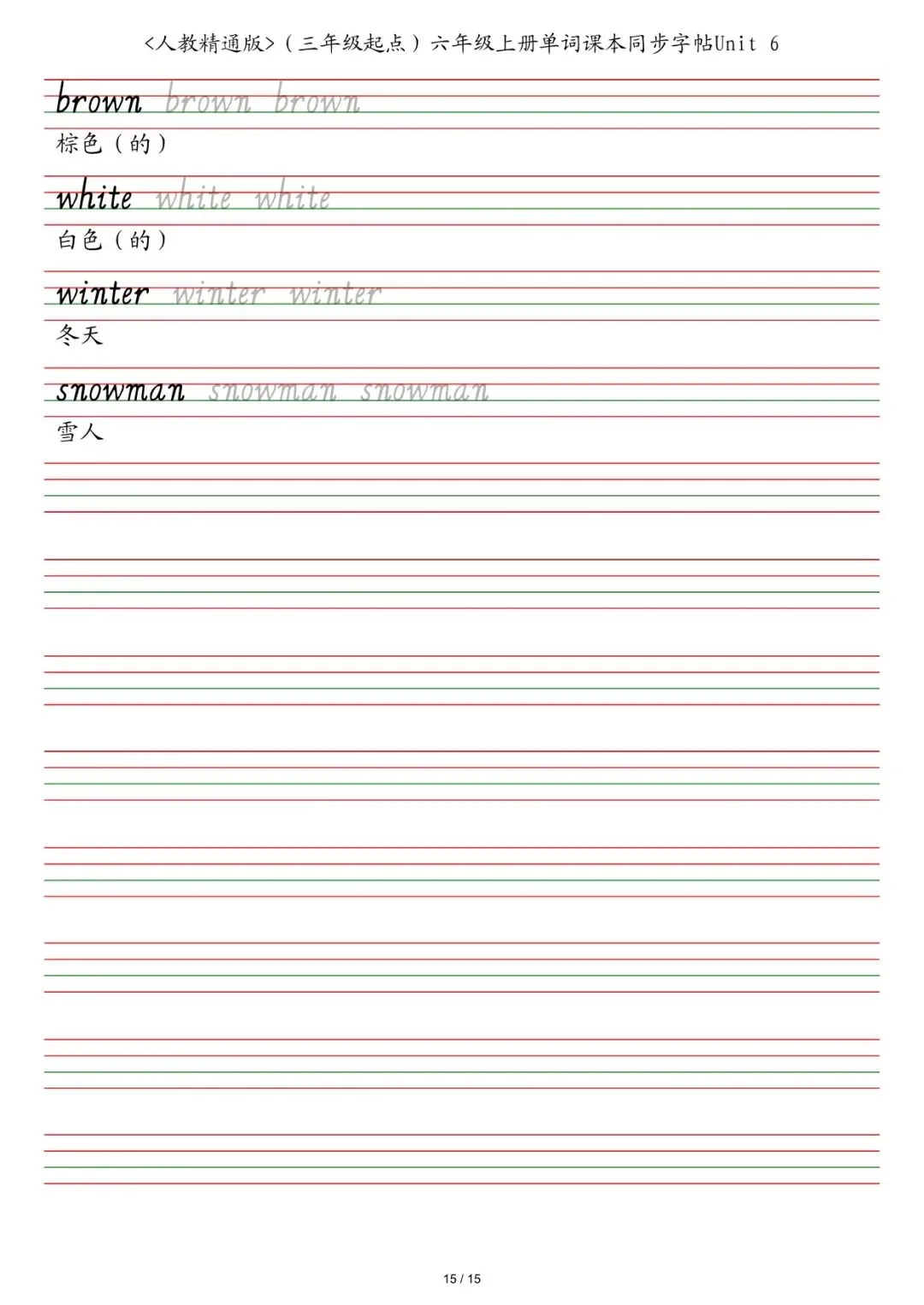 六年级各版本英语字帖,电子版可下载打印