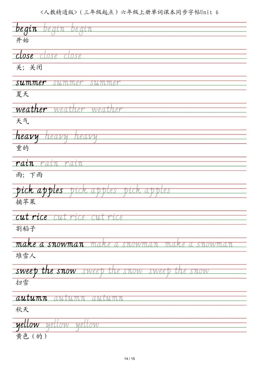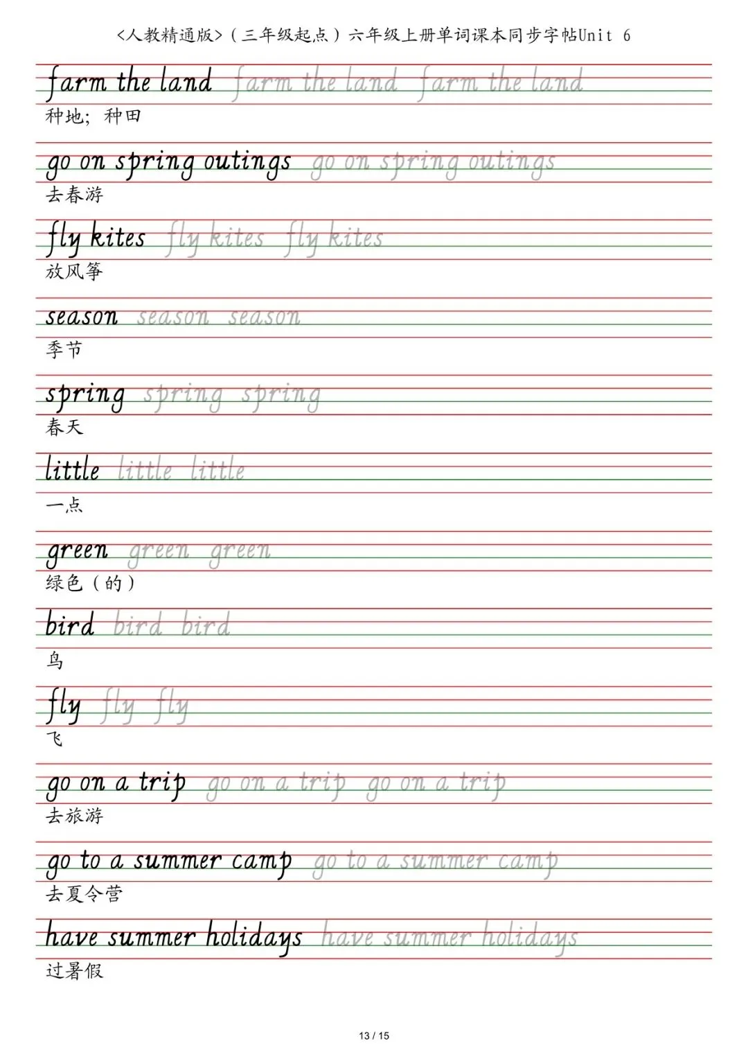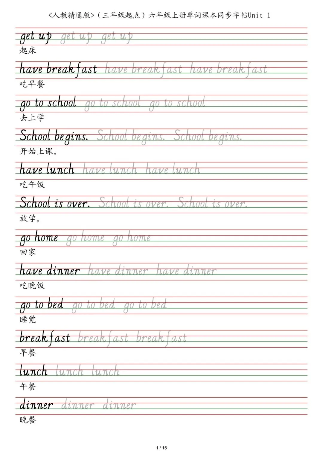 六年级各版本英语字帖,电子版可下载打印
