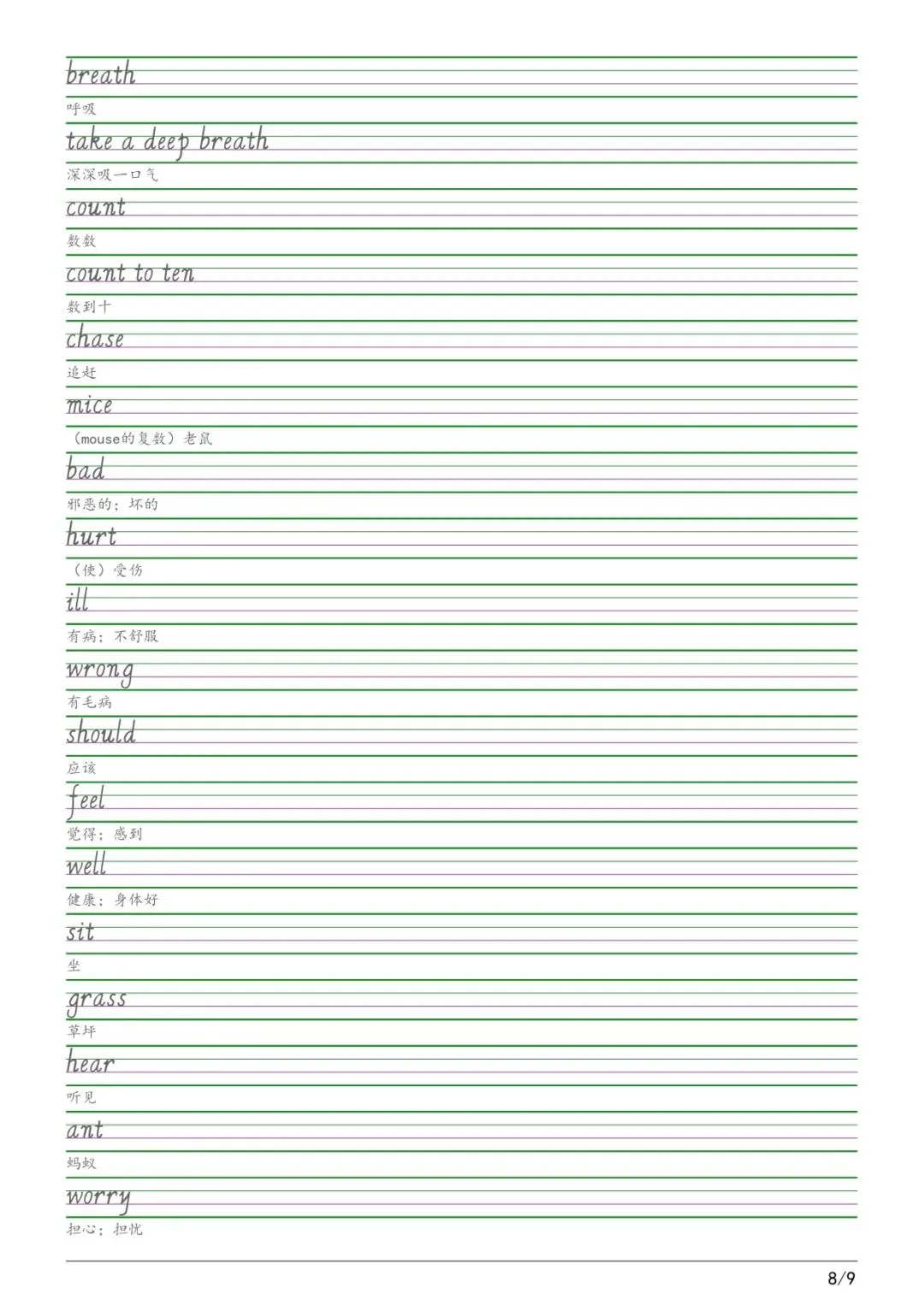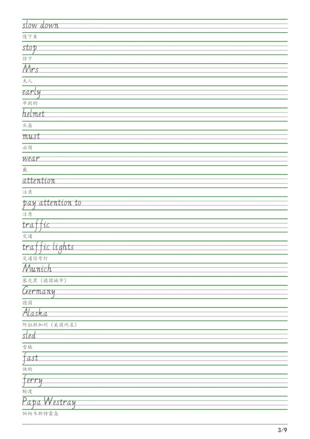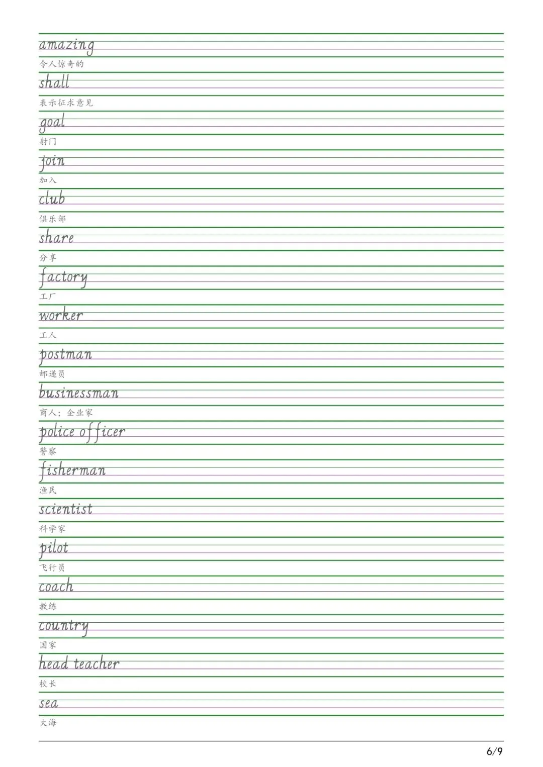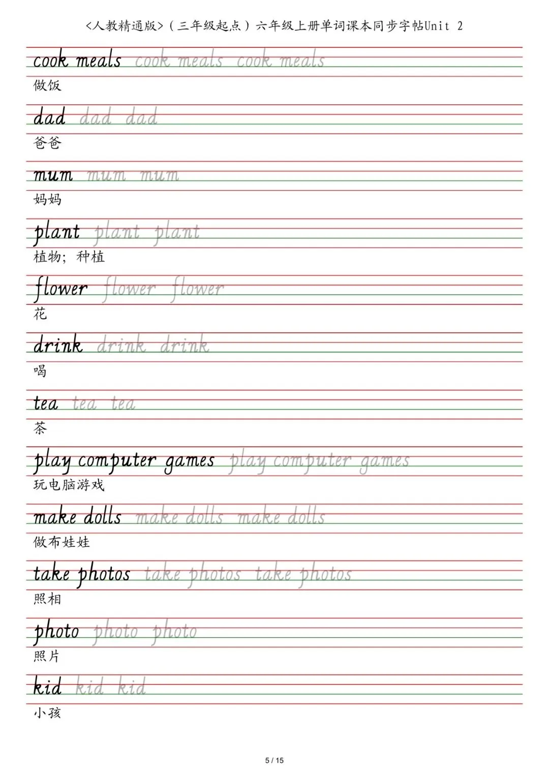 六年级各版本英语字帖,电子版可下载打印