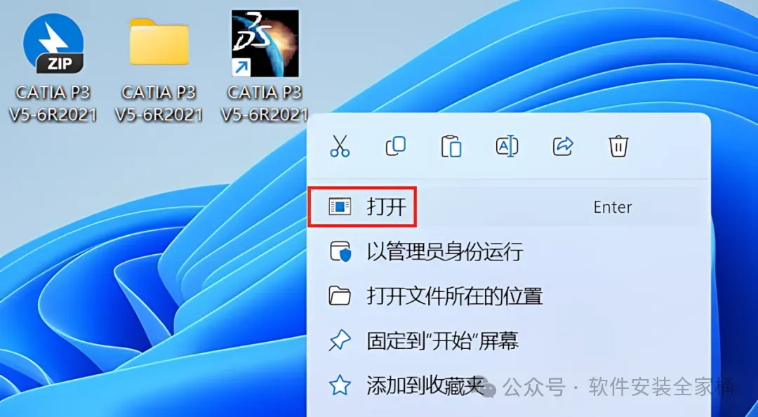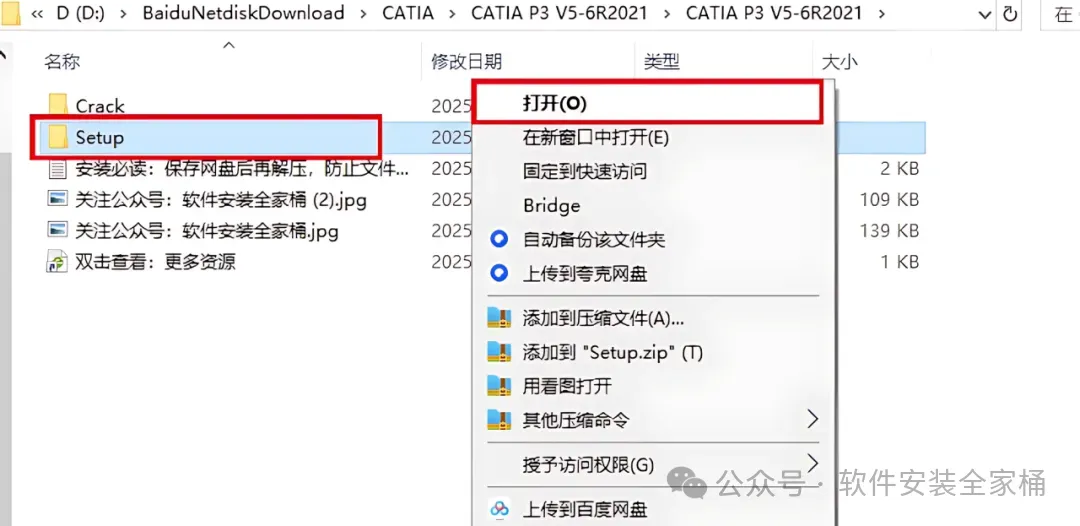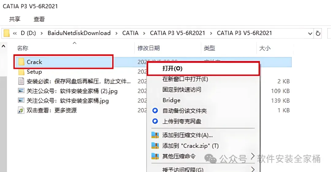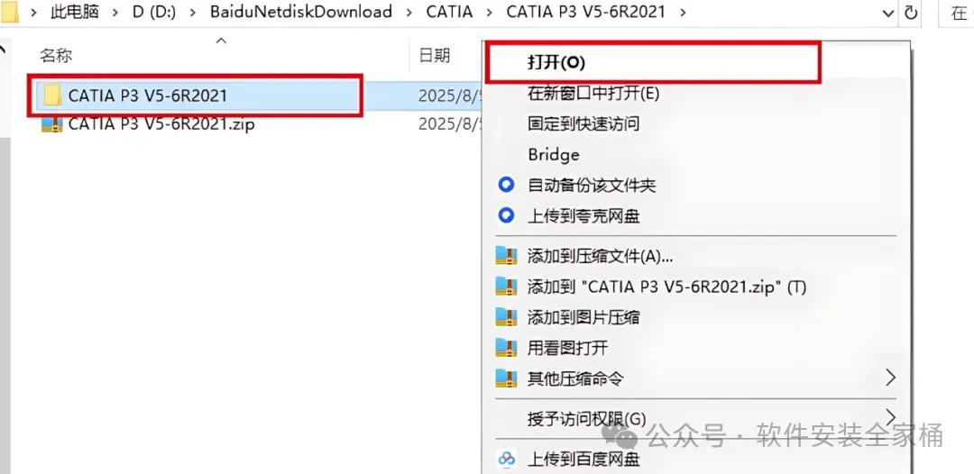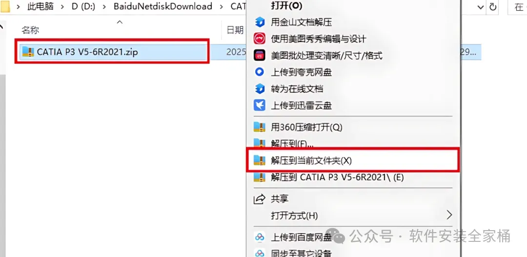 1、下载CATIA P3 V5-6R2021软件安装包到电脑上,右键选择【解压到当前文件夹】