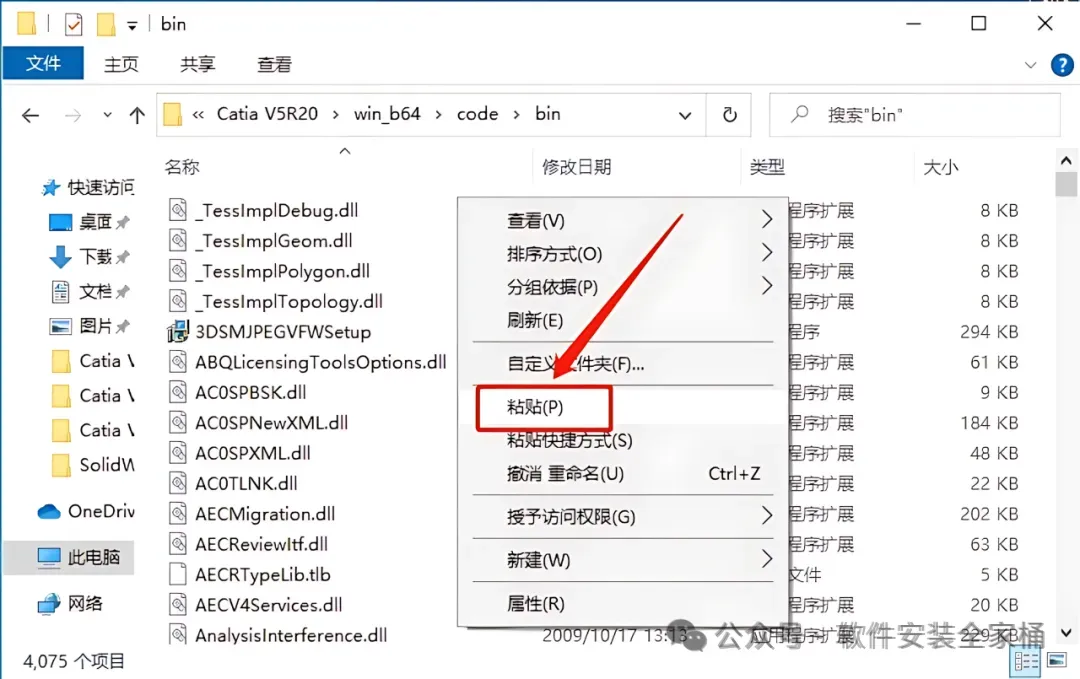 24.在打开的文件夹空白处,鼠标右键【粘贴】刚才复制的JS0GROUP.dll文件。