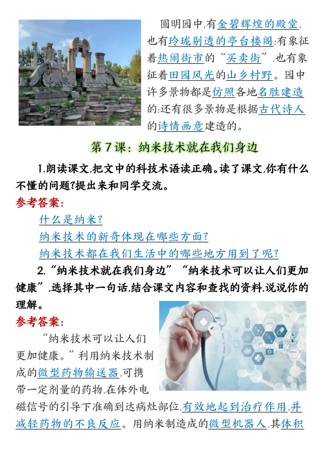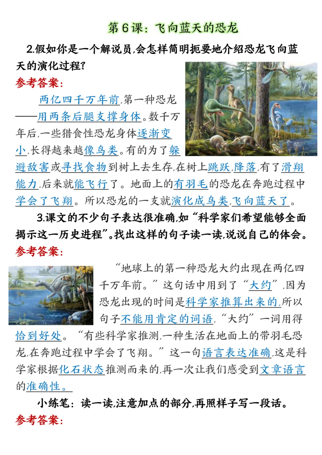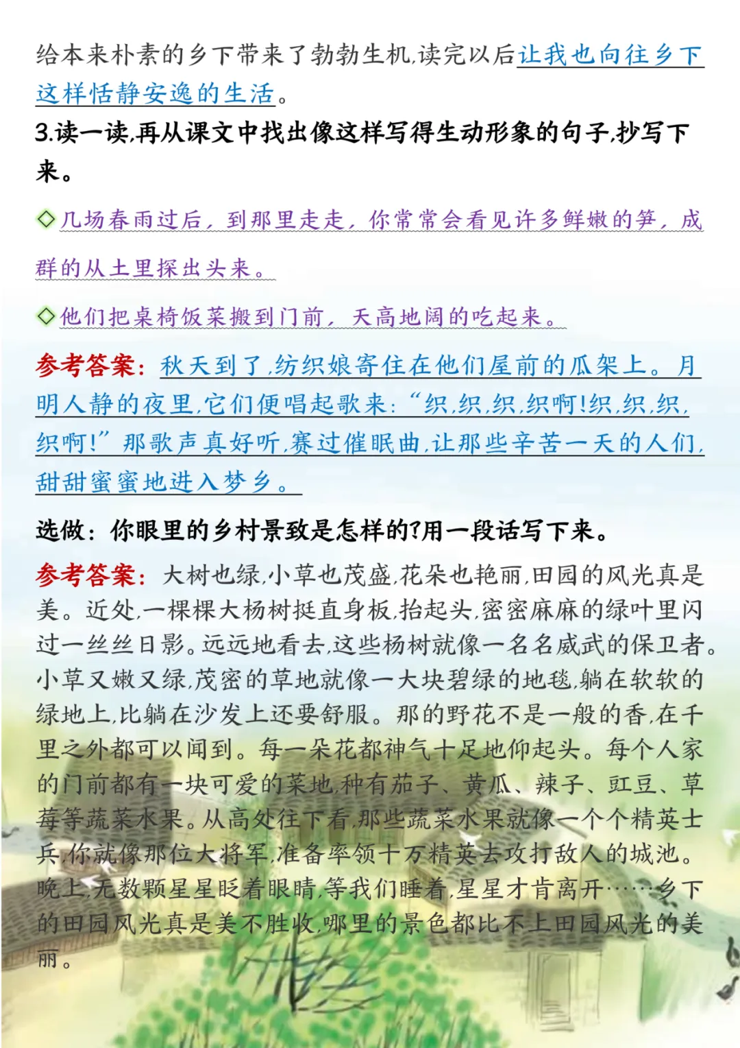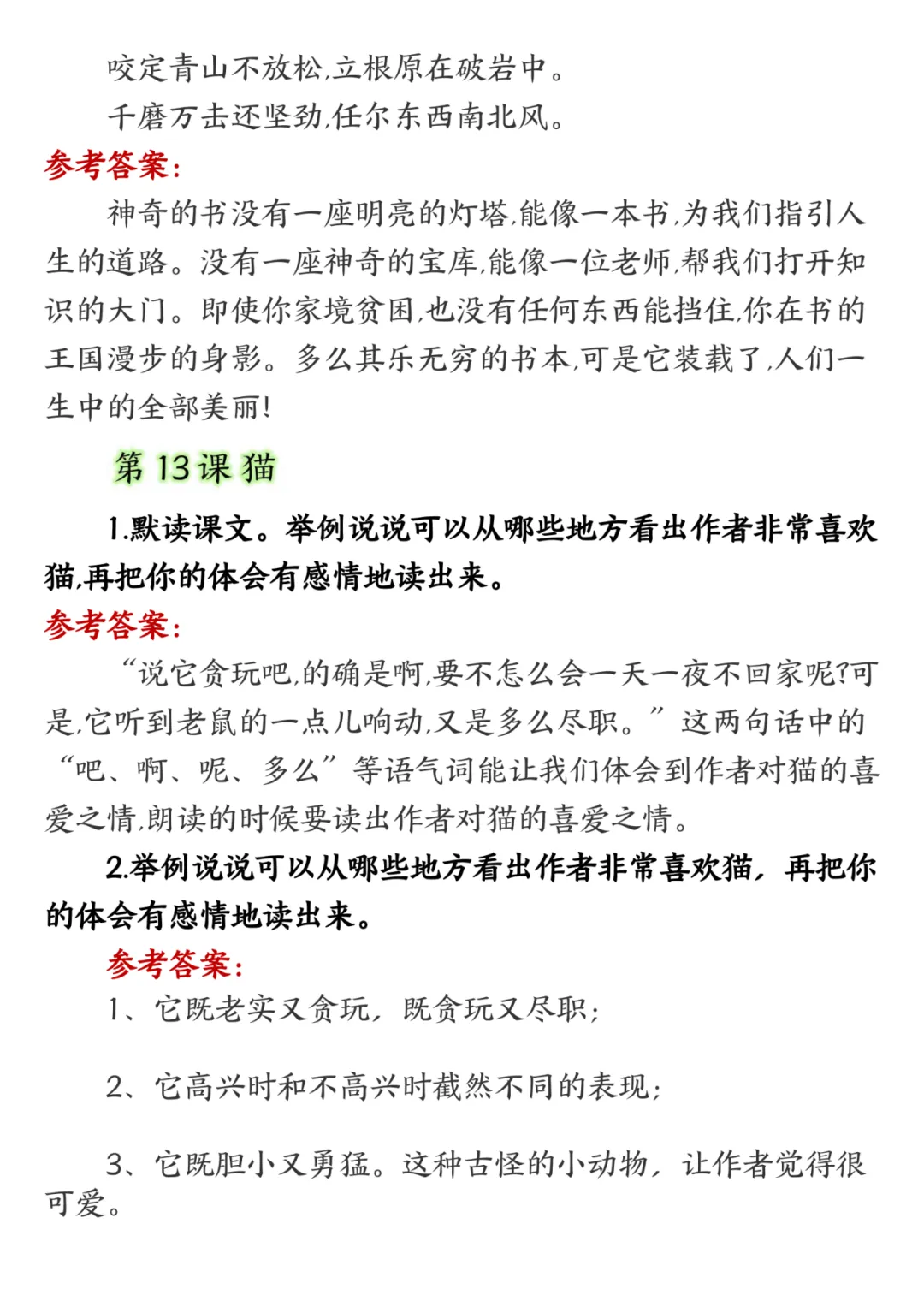 四年级下册语文课后习题答案,电子版,可打印