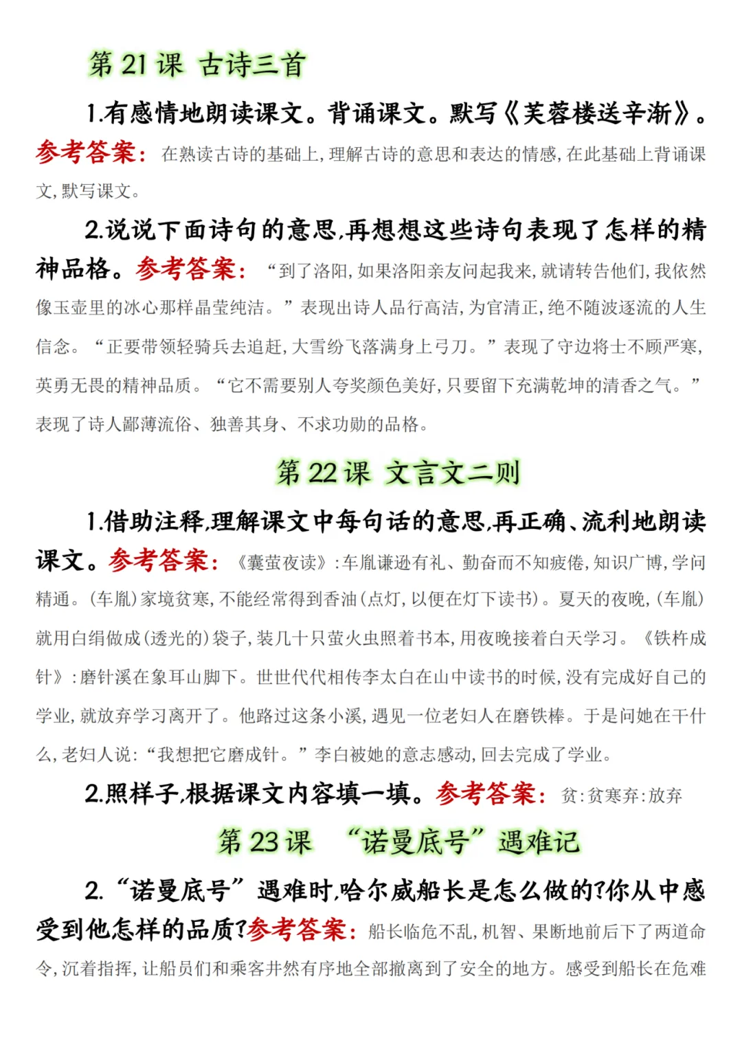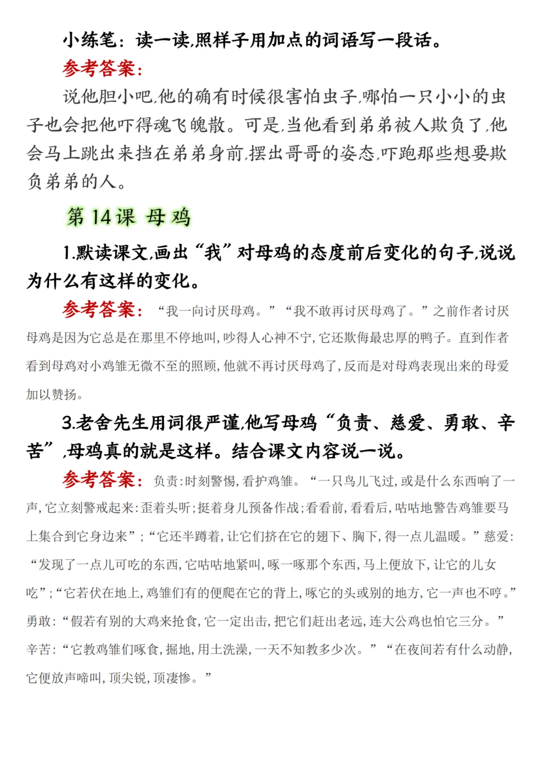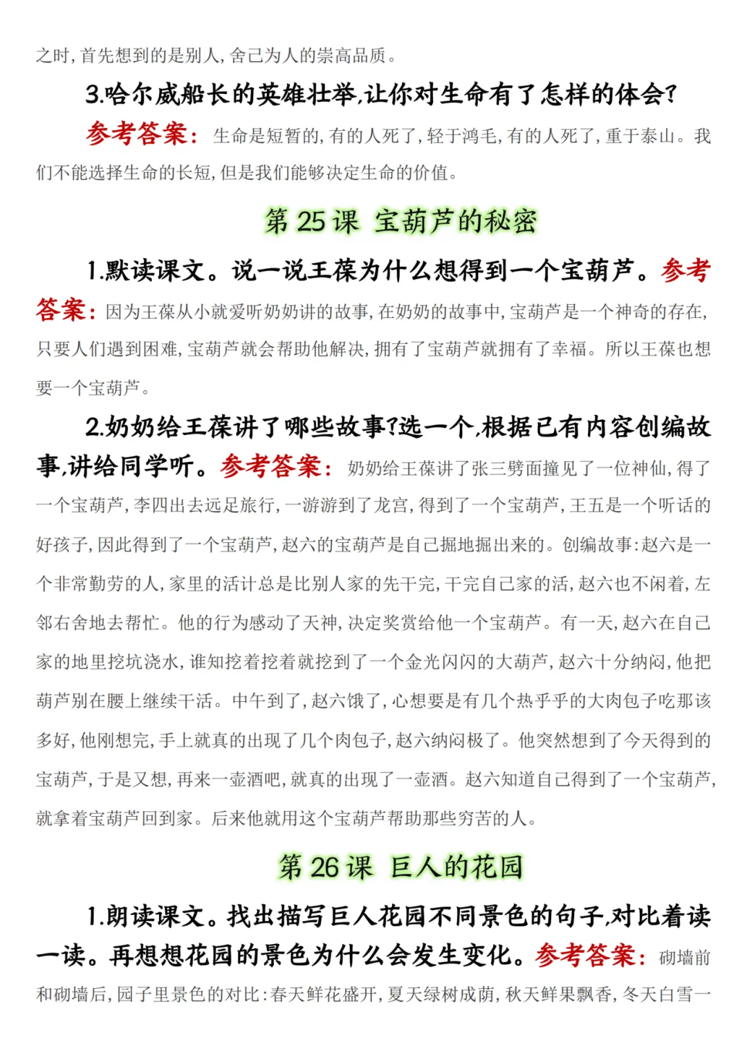 四年级下册语文课后题答案,共15页