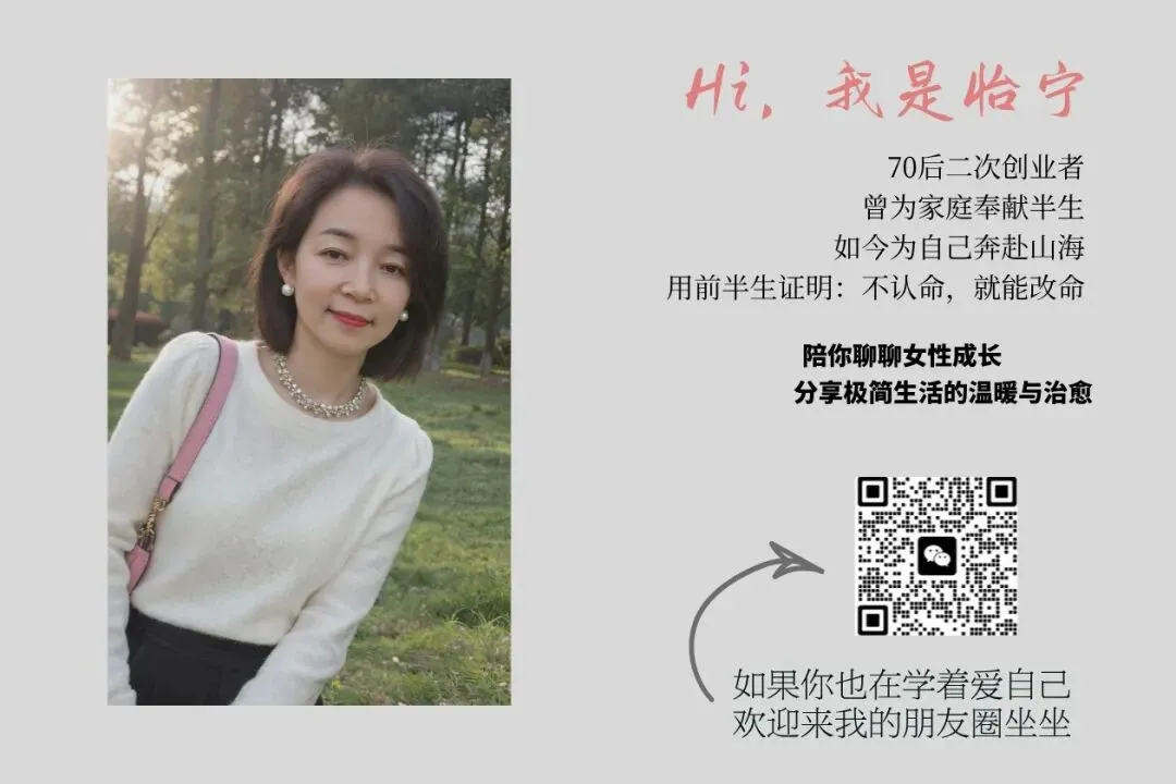 我是怡宁,70后,创业20年,50岁归零重启,这里记录的是一个中年女性,如何重新活一次。