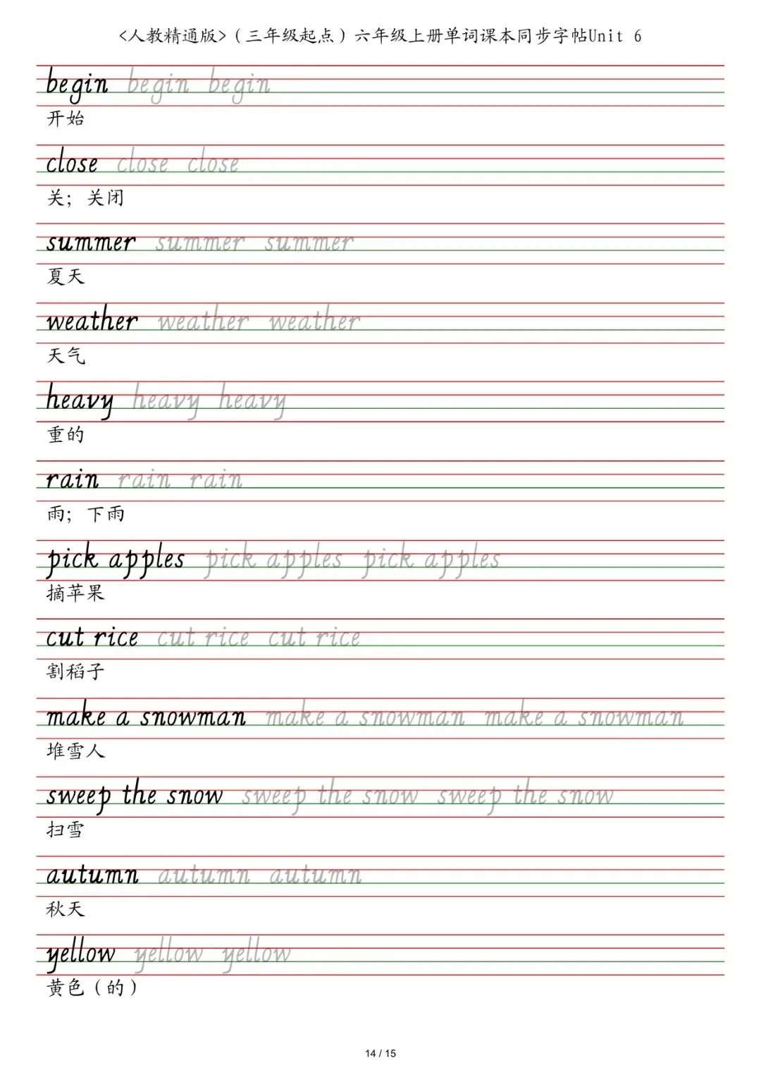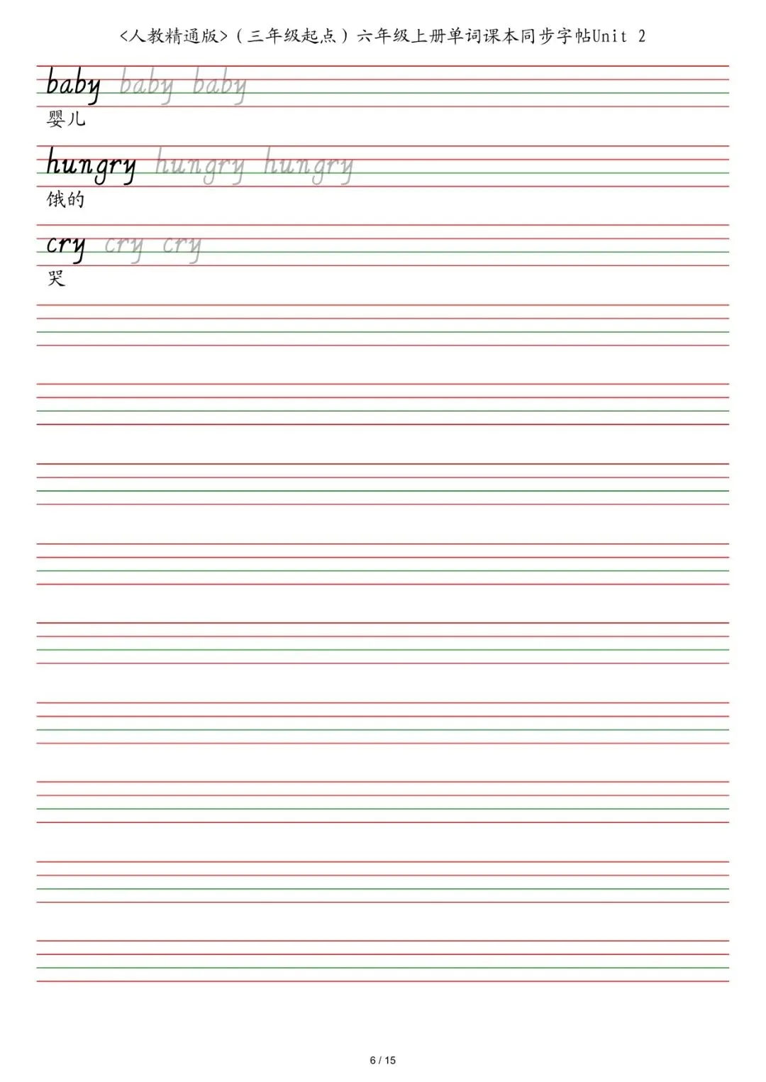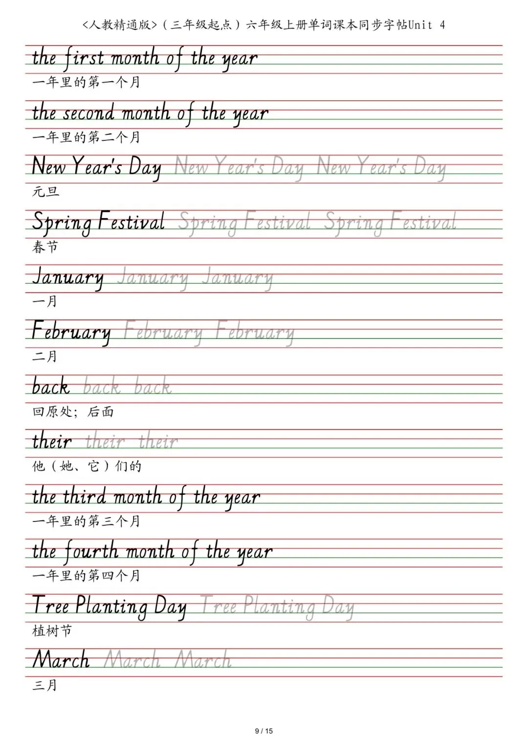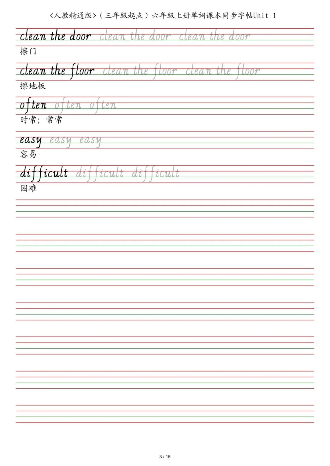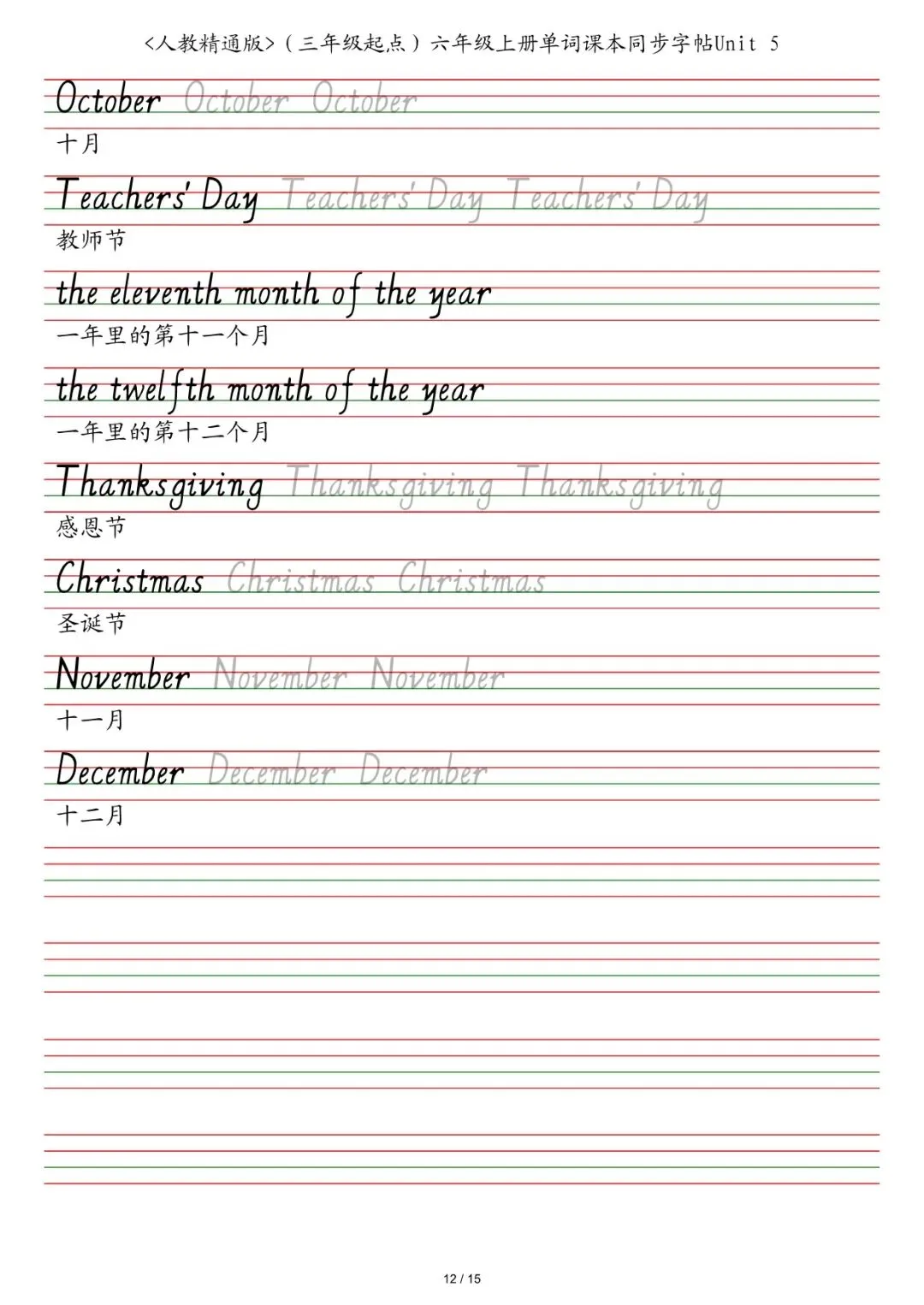 六年级各版本英语字帖,电子版可下载打印
