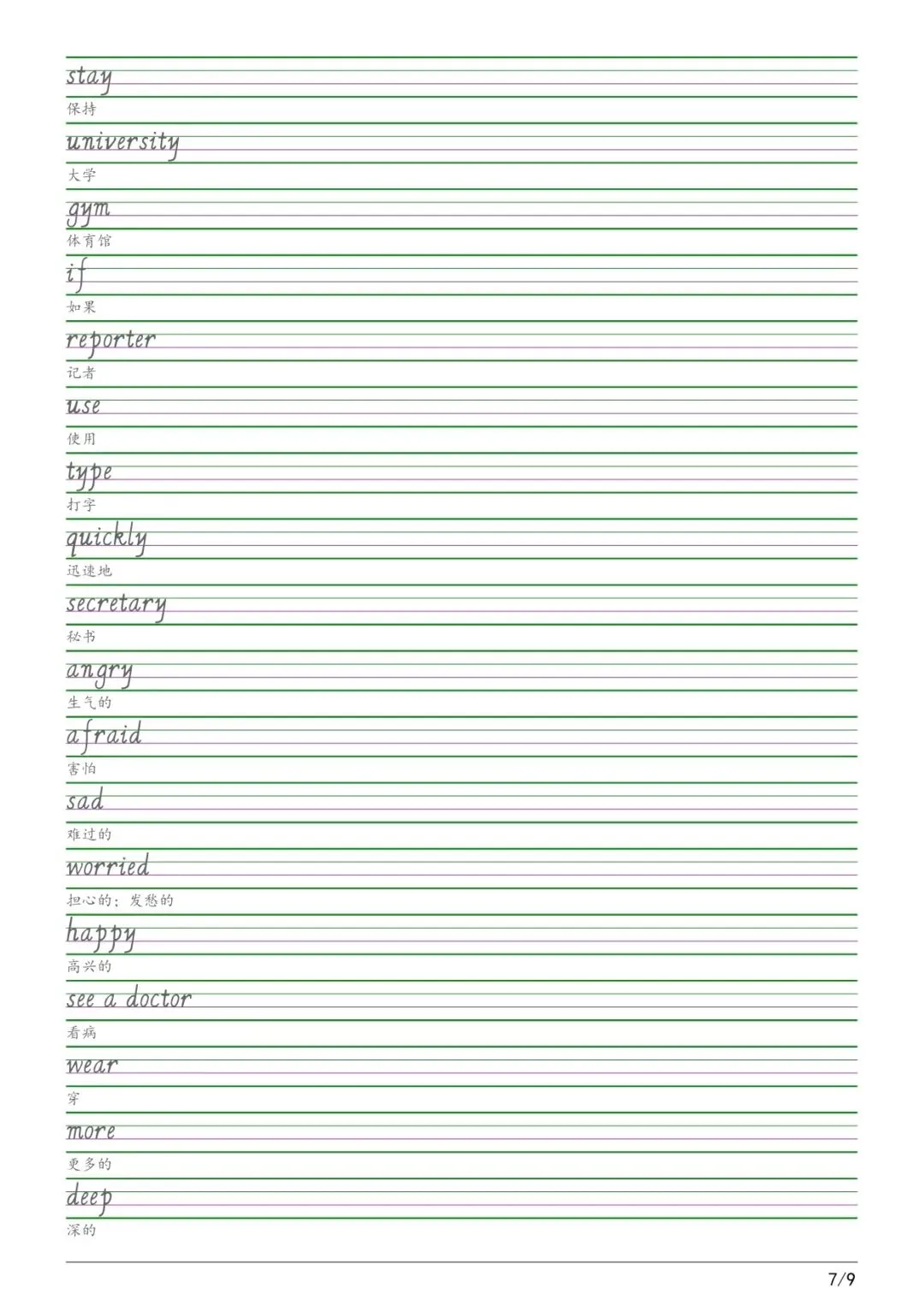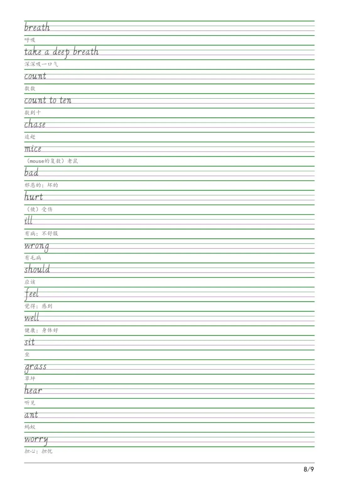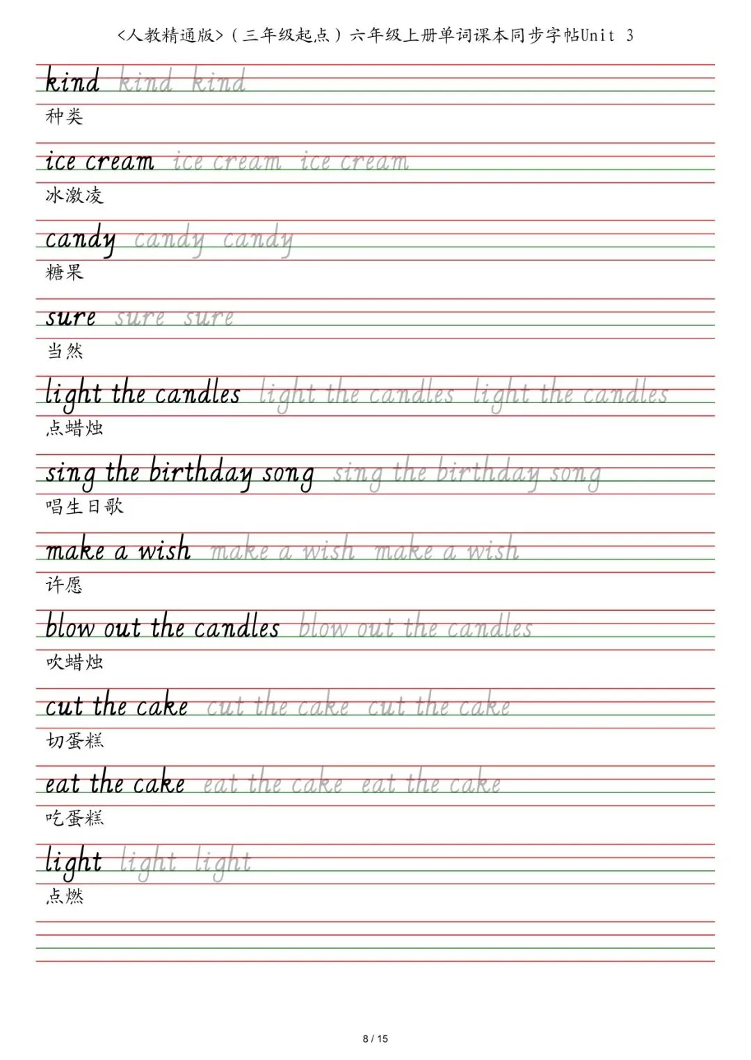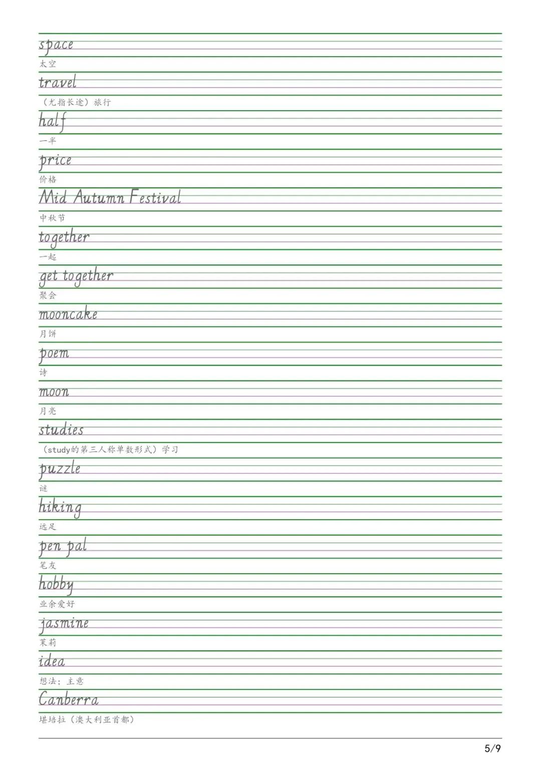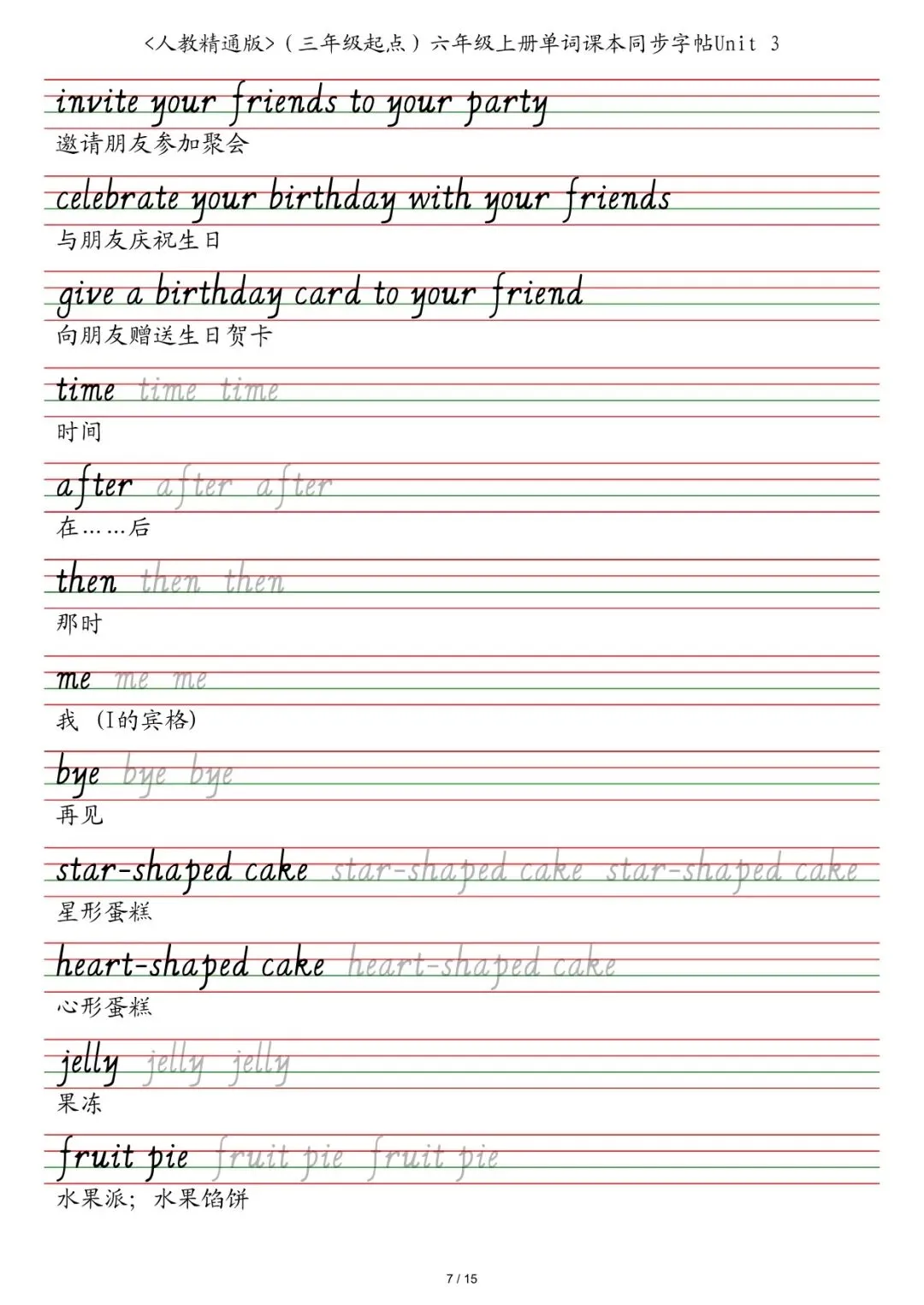 六年级各版本英语字帖,电子版可下载打印