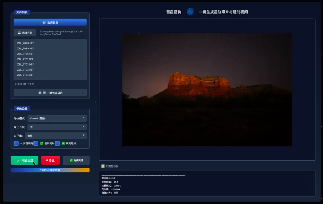 实时预览:处理过程中可实时查看星轨合成效果