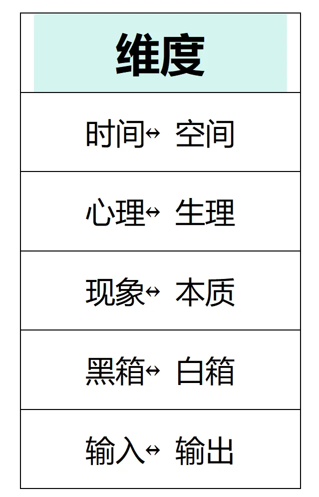 双运线避免了工业时代点状的、单线的运行方式。在这个微观环境中运行,你将不由自主地寻找事物的两面,形成完整的逻辑闭环,不会偏颇, 比如: