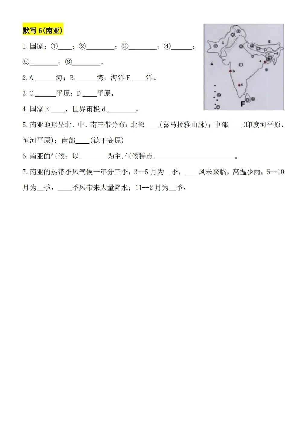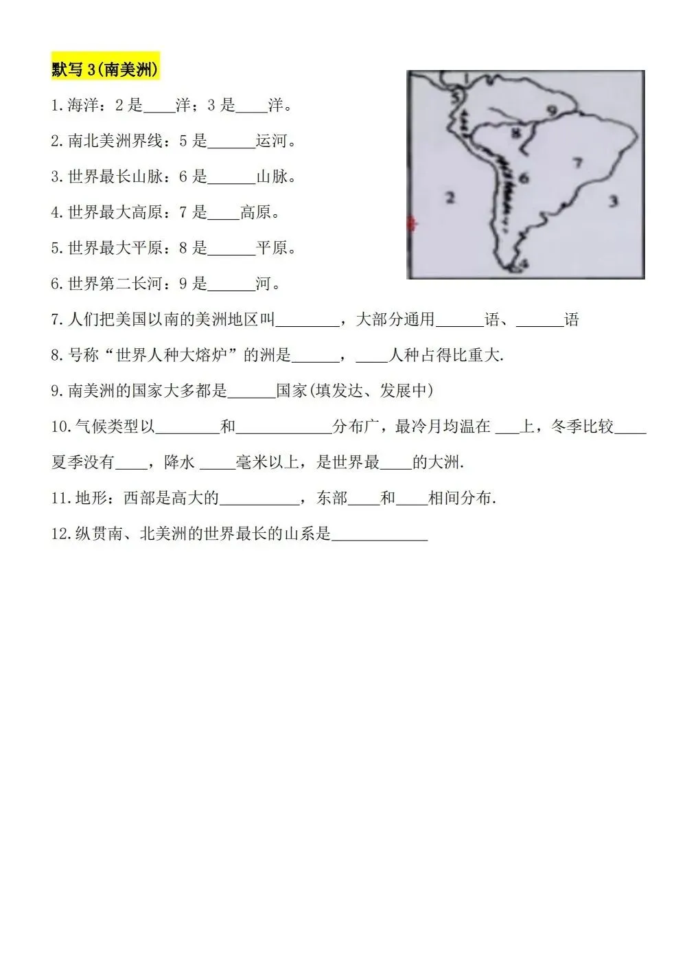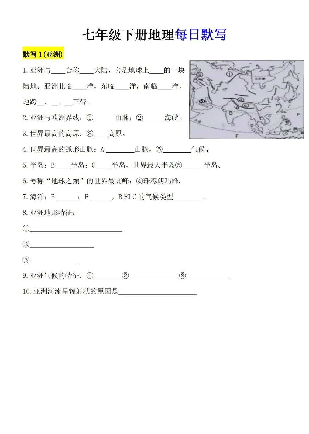2026版七年级下册地理重要知识点每日默写,可打印电子版!