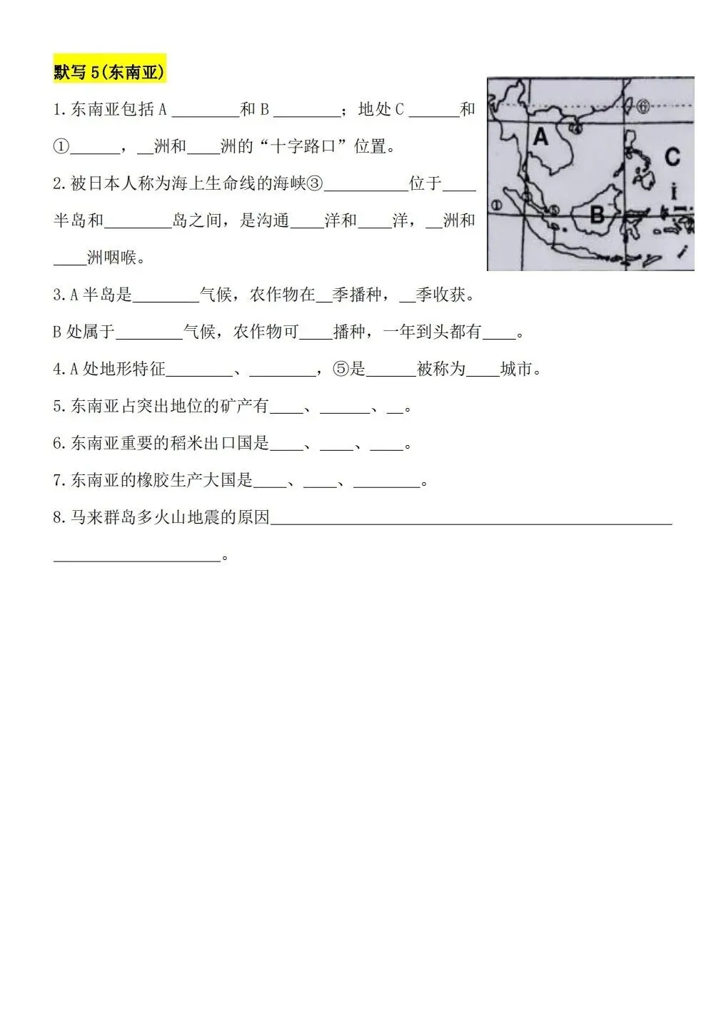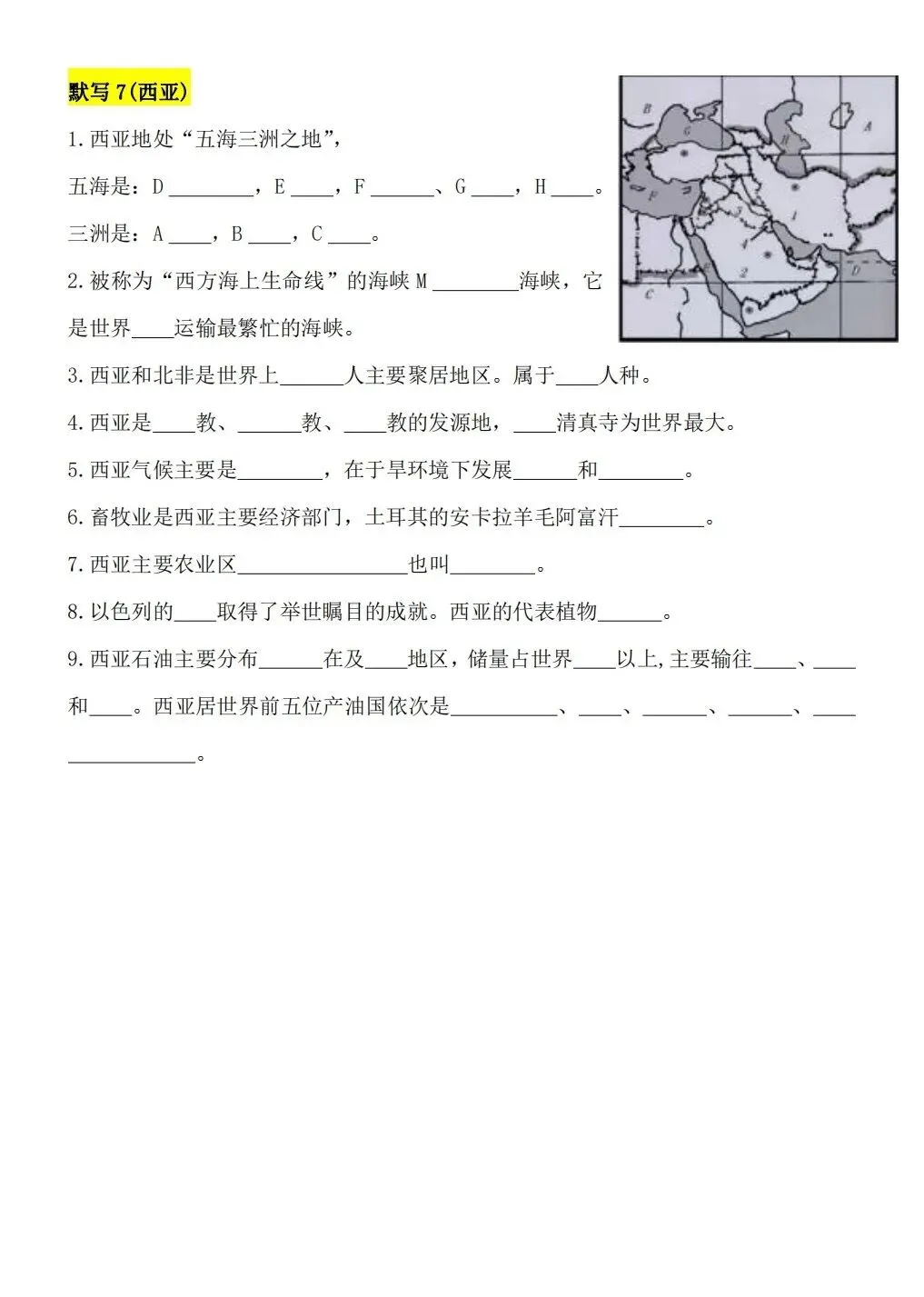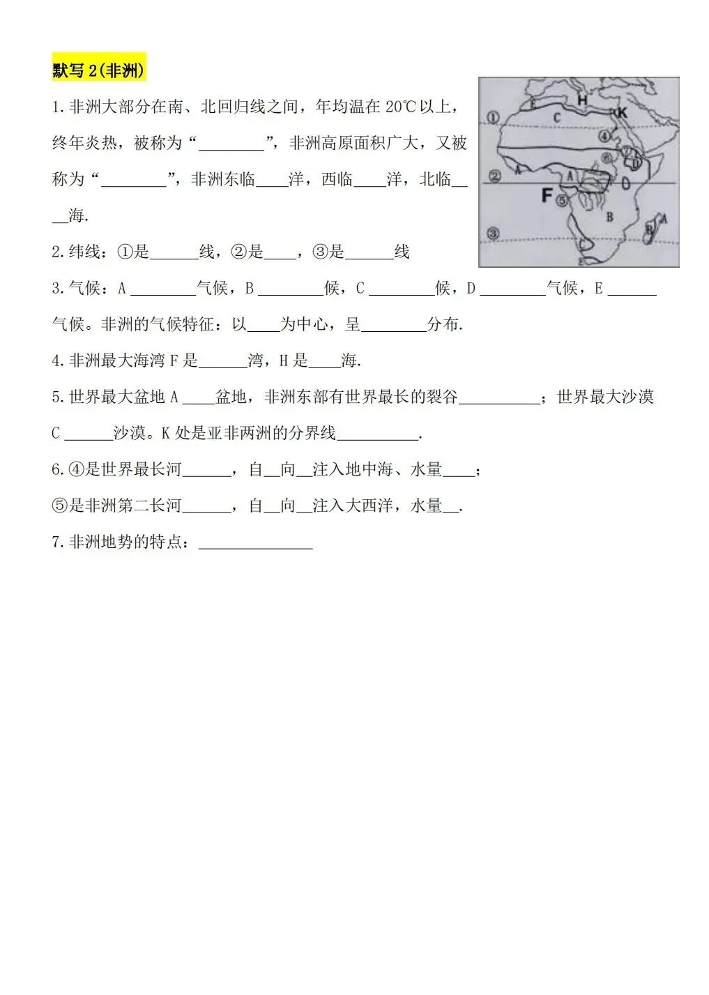 2026版七年级下册地理重要知识点每日默写,可打印电子版!