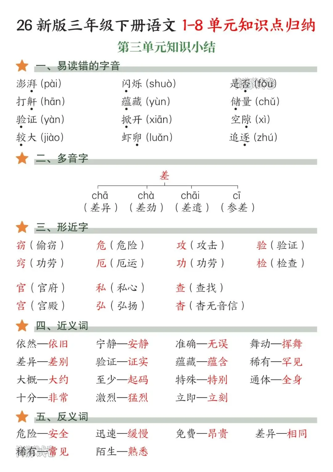 三年级(下)语文1-8单元知识点归纳,可下载打印 文末有高清电子版领取方式 由于篇幅有限,高清完整版请下载电子版哦 领取完整电子版方式: ①:发财的小手点一点右下角“👍”和“❤️” ②:关注公众号后,在对话框中回复:011 (点击名片可直接关注)↑↑↑
