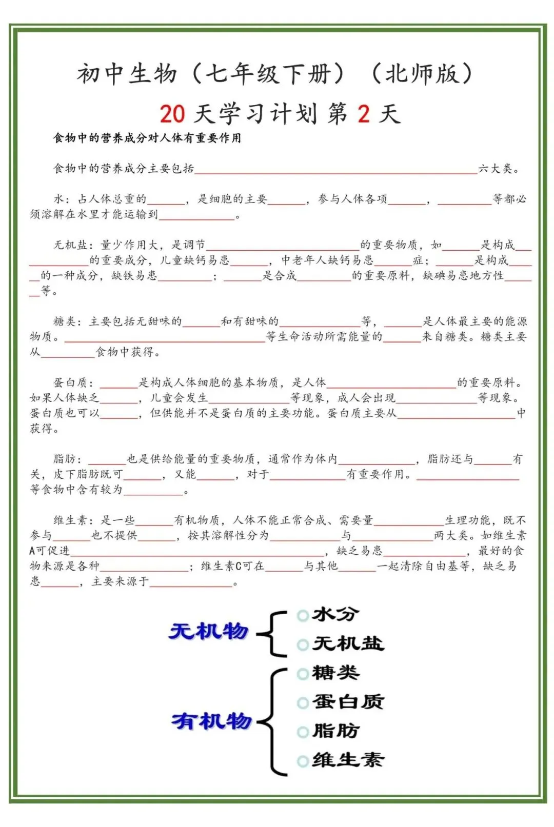 【七下生物】新版2026年-北师版七年级下册生物知识点背默小纸条(20天),可下载打印! 【七下生物】新版2026年-北师版七年级下册生物知识点背默小纸条(20天),电子版可下载打印! 资料为PDF高清无水印 共40页,可打印 展示前5页内容 获取电子打印版请拉到文末查看 (点击可查看大图,超清晰) ▲因篇幅有限,只展示部分资料截图 ▲ 完整版电子版 ↓↓↓ 点击资料下载 获取更多资料,请关注公众号