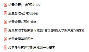 今天分享的资料是「0962-现代质量管理学」电子版+学习笔记+知识点总结+期末考试重点+复习资料+习题集及答案+名词解释+历年真题试卷及答案+题库及答案+复习重点+思考题及参考答案+公式总结+考试重点基础题+知识总结+高清PDF可打印+免费分享!