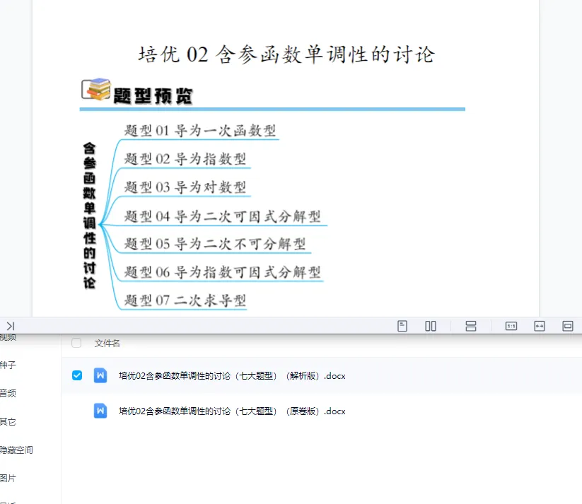 通过网盘分享的文件:【免费下载】培优02含参函数单调性的讨论七大题型2025年高三数学一轮考点剖析及精准训练