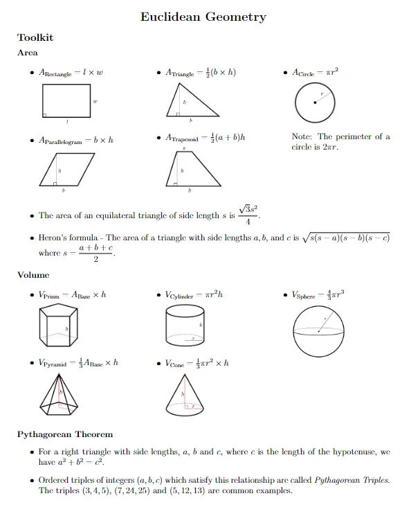 欧几里得考前必备公式,PDF版文件免费领~